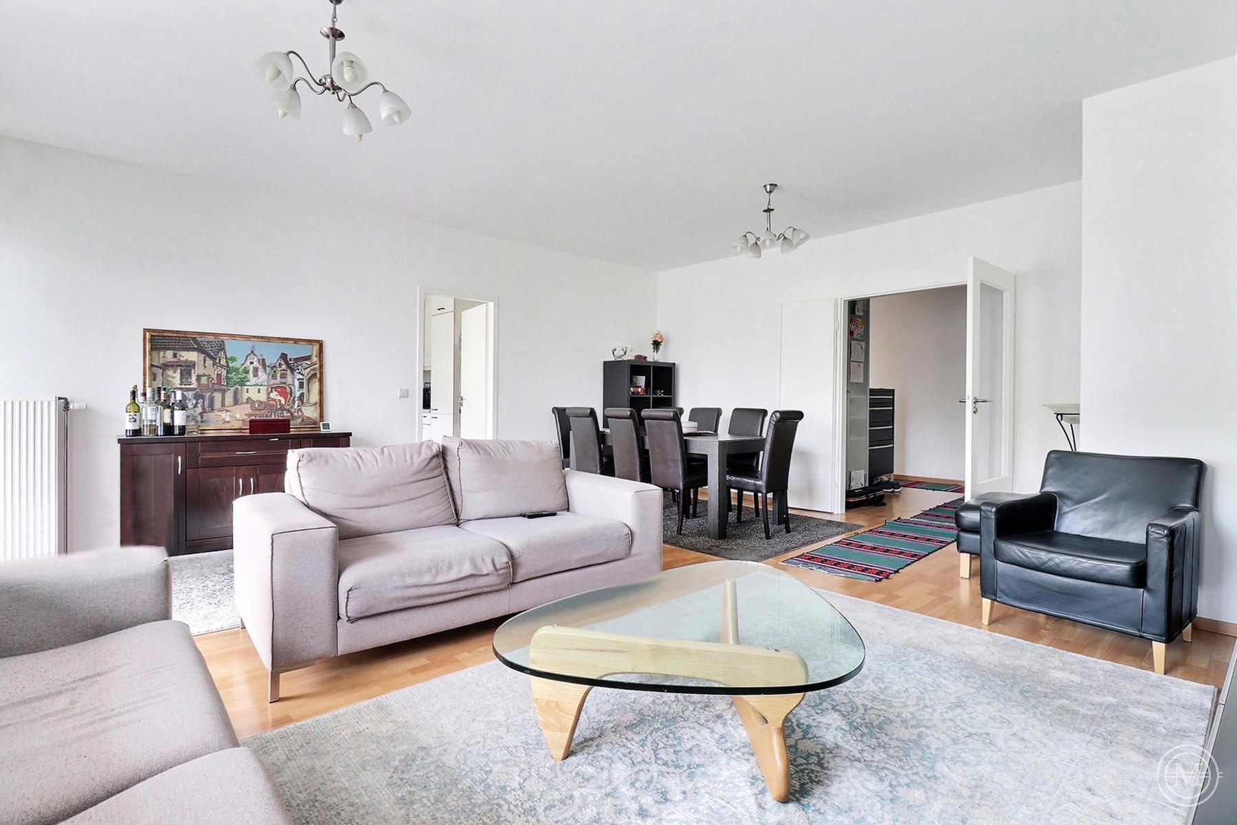 In the Marcel Thiry/Cora district, beautiful apartment located on the 2nd floor of a recent building, offering an area of around 110m2 and consisting of: Entrance hall, bright living room with a west-facing terrace, super-equipped kitchen and separate laundry room, 3 bedrooms, bathroom, shower room and separate wc. The property has a cellar and an indoor parking space (included). Access control, armored door, videophone. Individual gas heating, double glazing. Monthly charges: €100 (condominium, management). Residential environment, quiet area. Close to the European school, shops, public transport and highways. Contact us for a visit!
