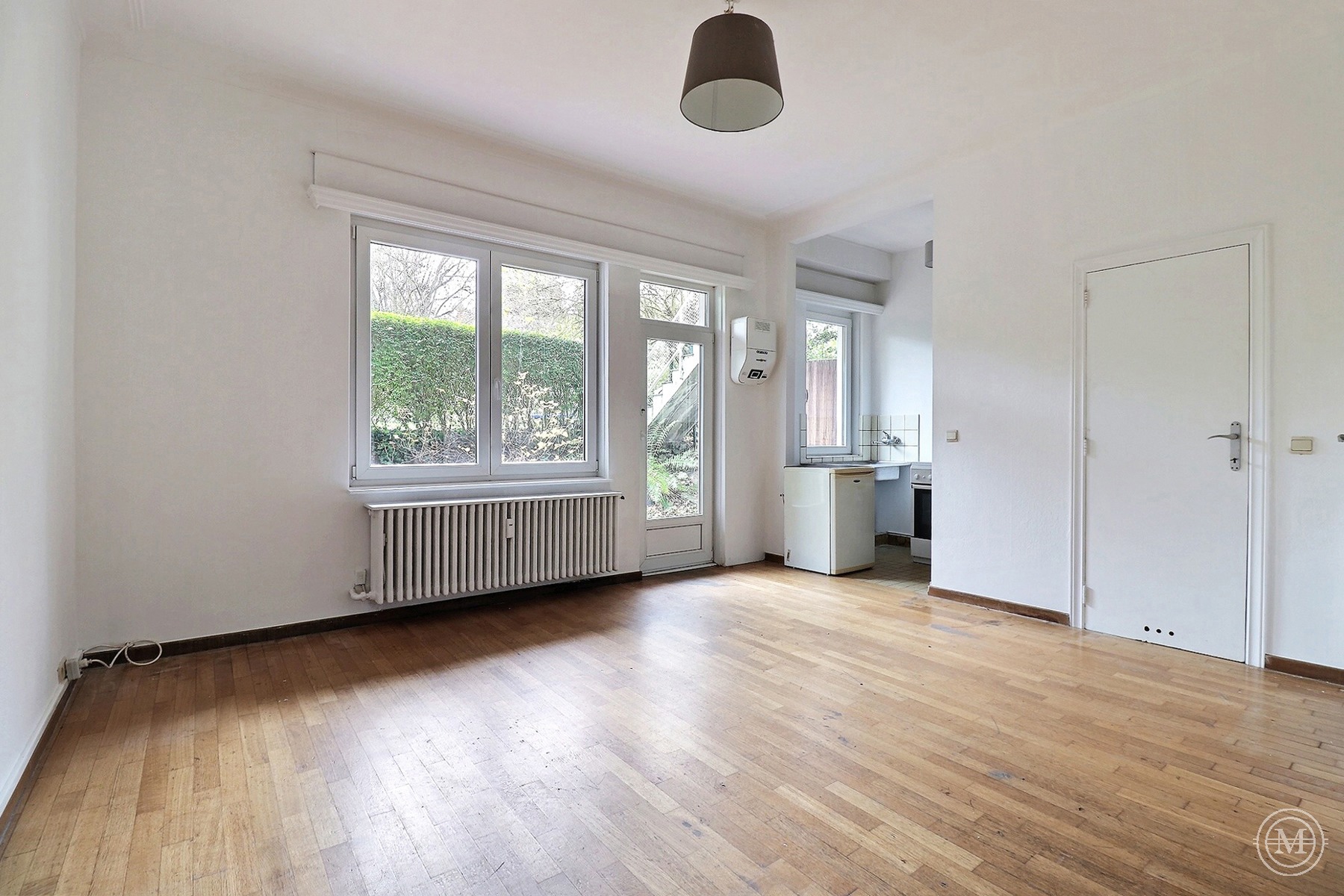 In the sought-after Solbosch district, near the ULB, Meert Realty exclusively offers this studio of approximately 35m² (according to the EPC) with a terrace. Located on the ground floor of a well-maintained residential building, the property comprises an entrance hall with a toilet, a living room with a sleeping area, a semi-equipped kitchen, a bathroom. A lovely private terrace with a small garden and an outdoor storage room. A cellar in the basement. Central heating, double glazing, ventilation system. EPC: F. Some updating is required. Close to shops, schools, and public transport. Ideal for investors, students or single individuals. Info and visits: +32 477 66 17 69 or jeremy@meert-realty.com