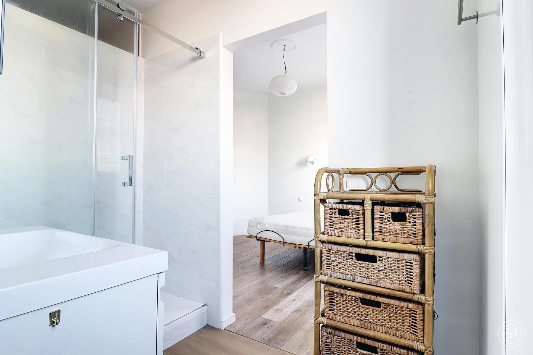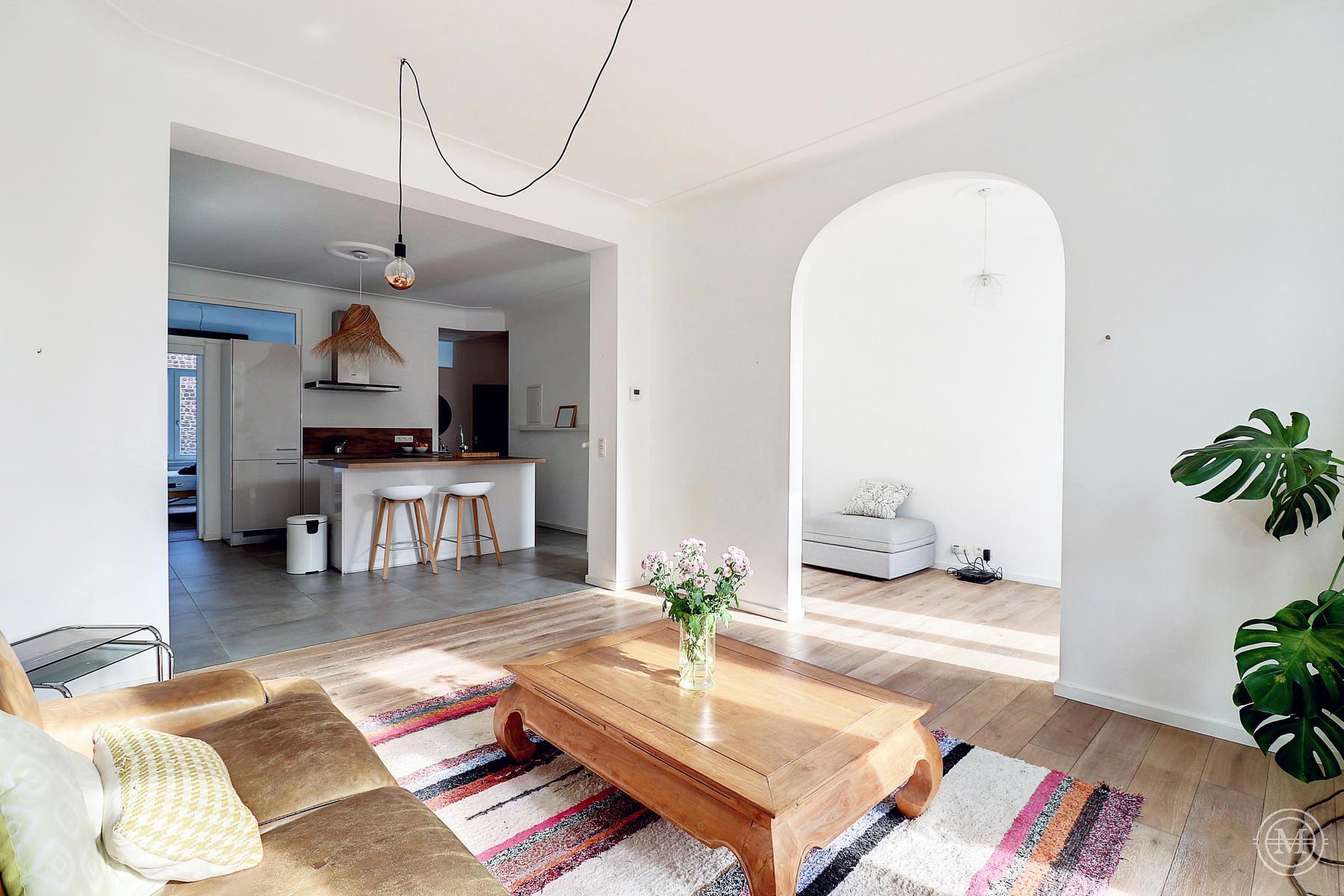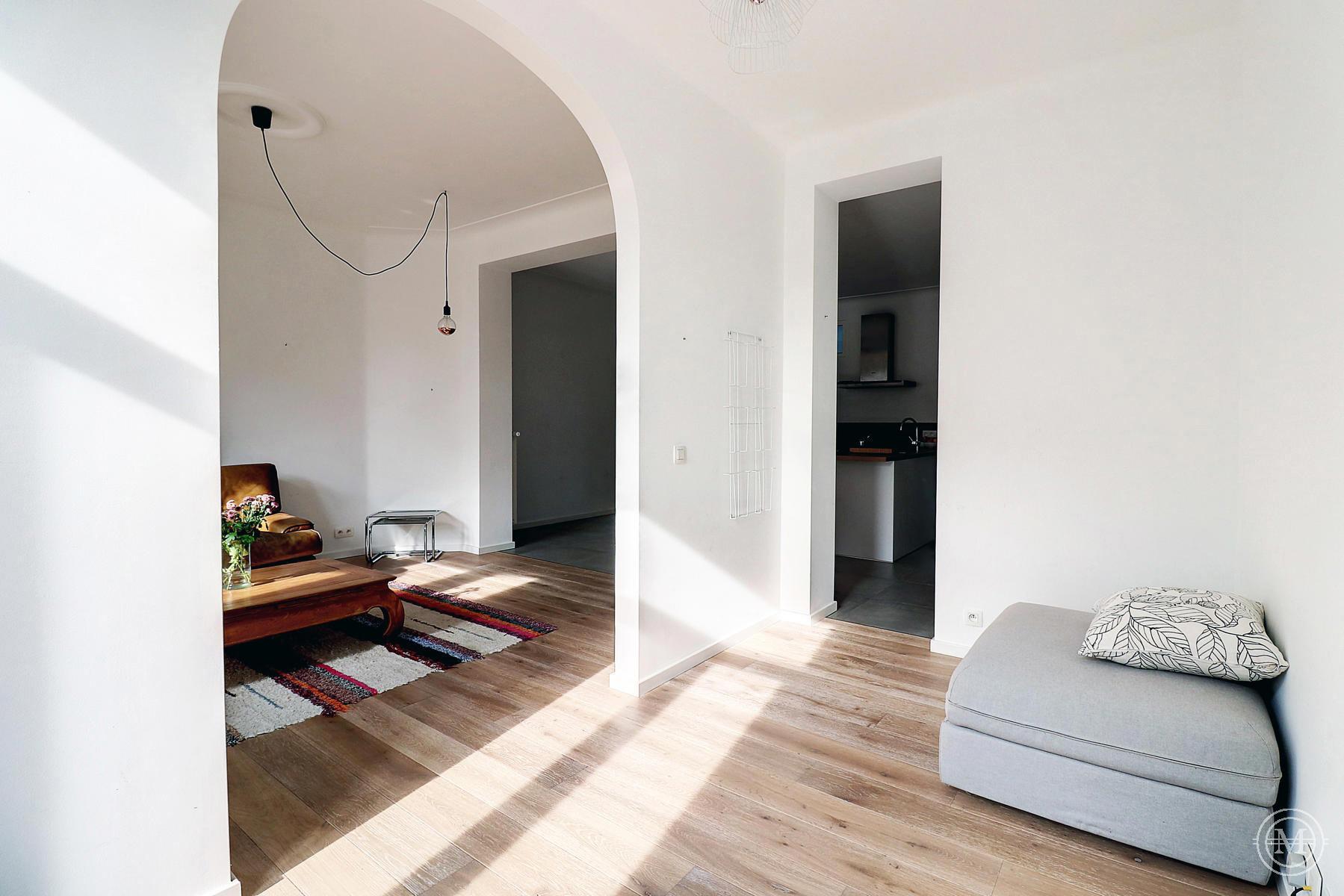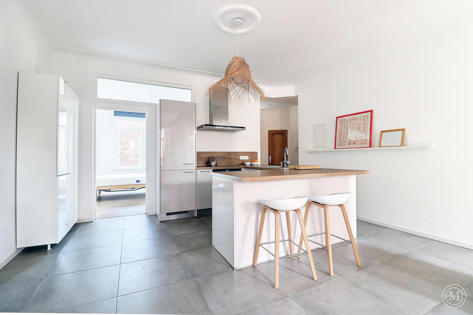 Dans une rue calme à proximité de l'Altitude 100 et du parc de Forest, Meert Realty vous propose ce bel appartement traversant d'environ 75m2, entièrement rénové. Situé au 3e étage d'une petite copropriété (sans ascenseur), le bien se compose d'un hall d'entrée avec vestiaire et wc, une vaste cuisine hyper-équipée et ouverte sur le séjour, un petit salon ou chambre d'appoint, une chambre avec salle de douche et wc. Cave et buanderie privative au sous-sol. Parquet massif, double vitrage, chauffage individuel au gaz. Charges mensuelles: 65€ (communs). Possibilité de louer un local (atelier ou bureau) à l'entresol moyennant un supplément de loyer de 150€. Proche de toutes les facilités, écoles, commerces et transports, à quelques pas du Parc Duden et du Parc de Forest. Disponible à partir du 01/05/2024. Infos et visites : +32 2 763 26 98 - info@meert-realty.com
