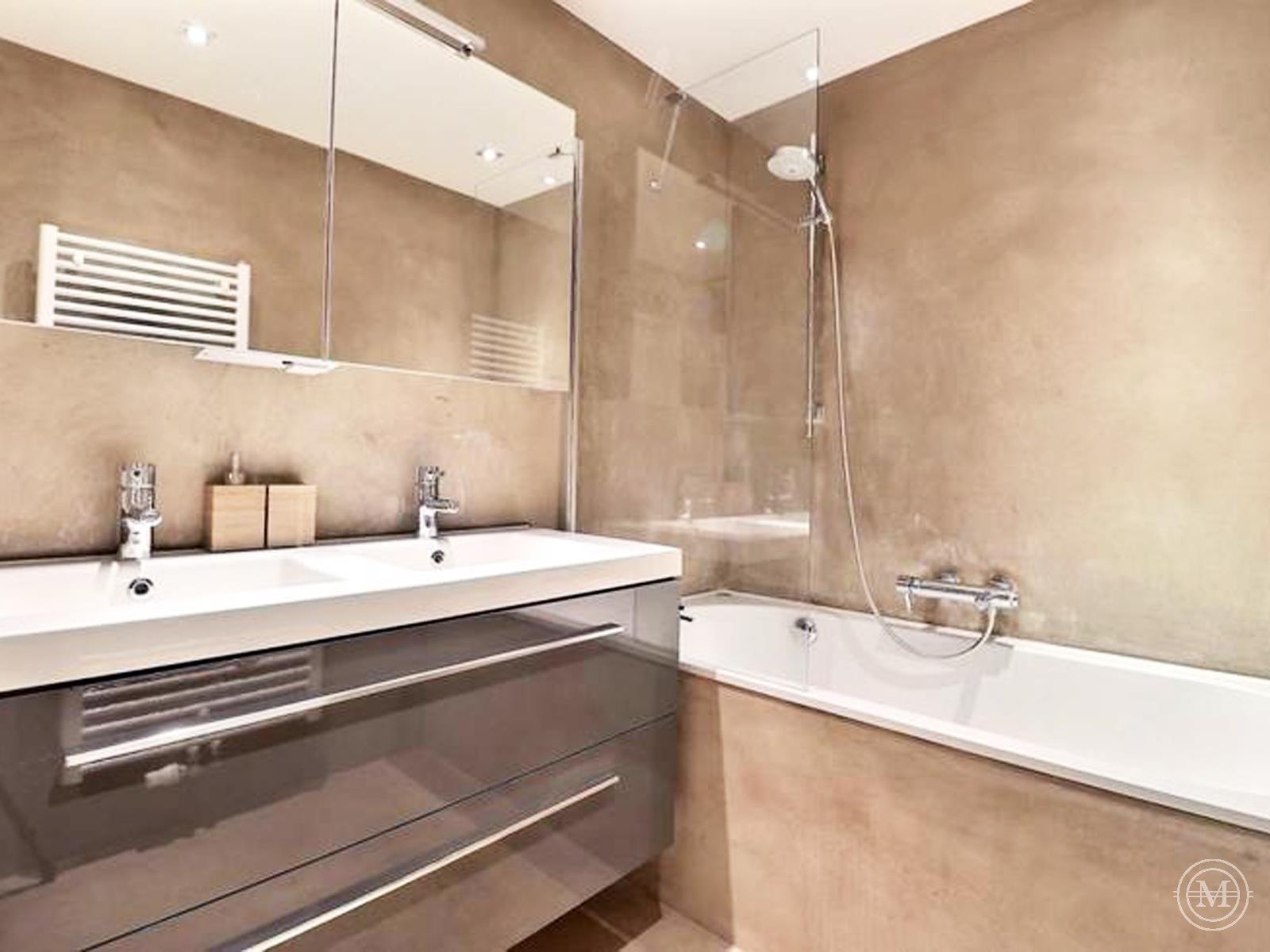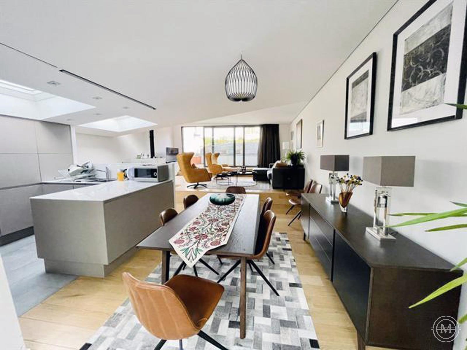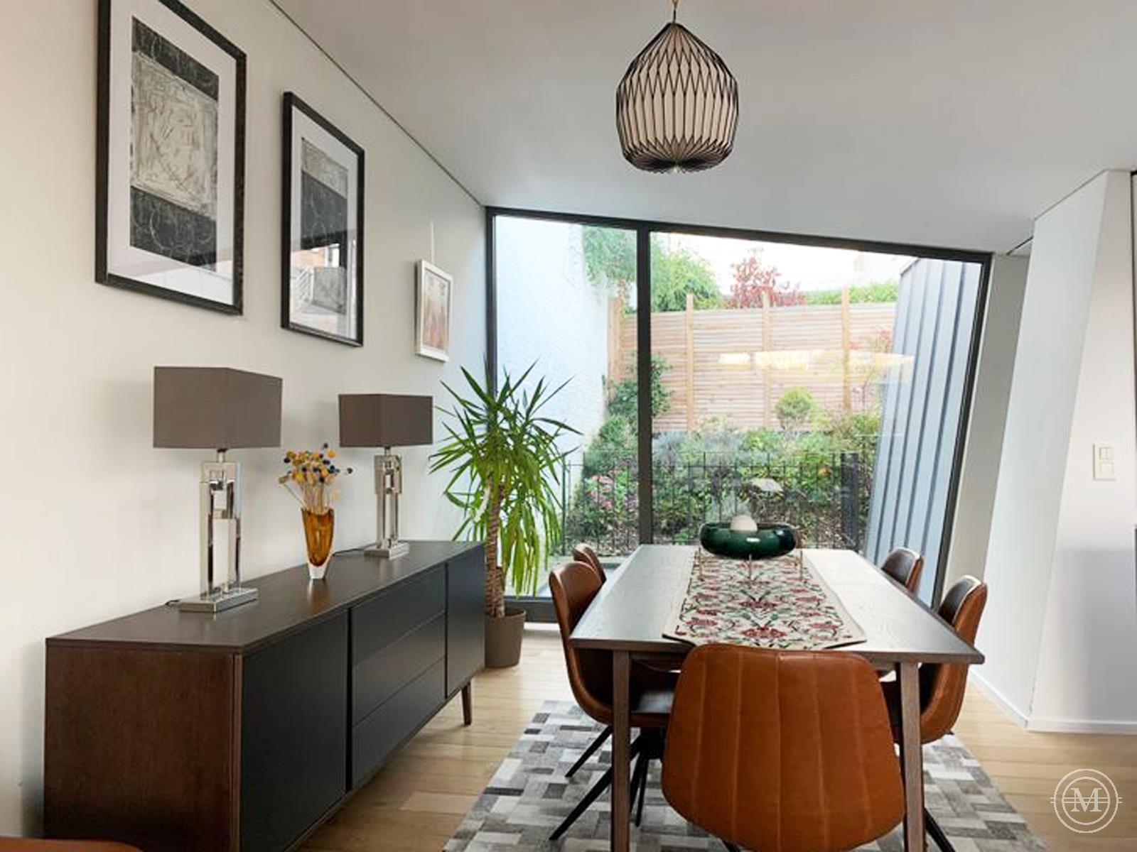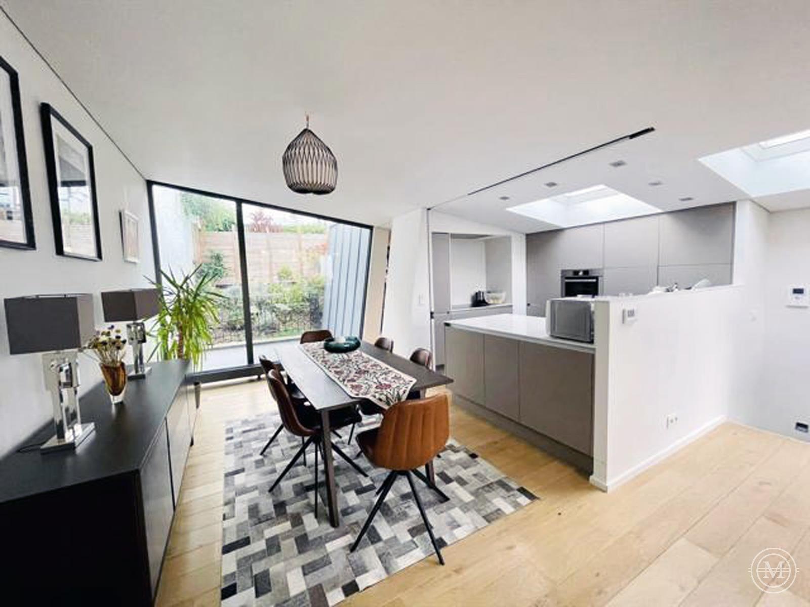 Proche de l'Abbaye de la Cambre et des étangs d'Ixelles, belle maison de style contemporain offrant une supercicie habitable d'environ 140m2, deux terrasses et un garage pour 2 voitures. Le bien se compose d'un hall d'entrée avec vestiaire et wc, une cage d'escalier s'ouvrant sur de belles réceptions, accès à la terrasse avant, une cuisine USA hyper-équipée, une suite parentale avec salle de bains et terrasse arrière. A l'étage, deux chambres et une salle de douche/wc. Cave et buanderie. Récemment rénové, équipements de qualité. Alarme, ascenseur. Chauffage central au gaz. PEB : C. Un lieux agréable à vivre, proche de toutes les facilités!
