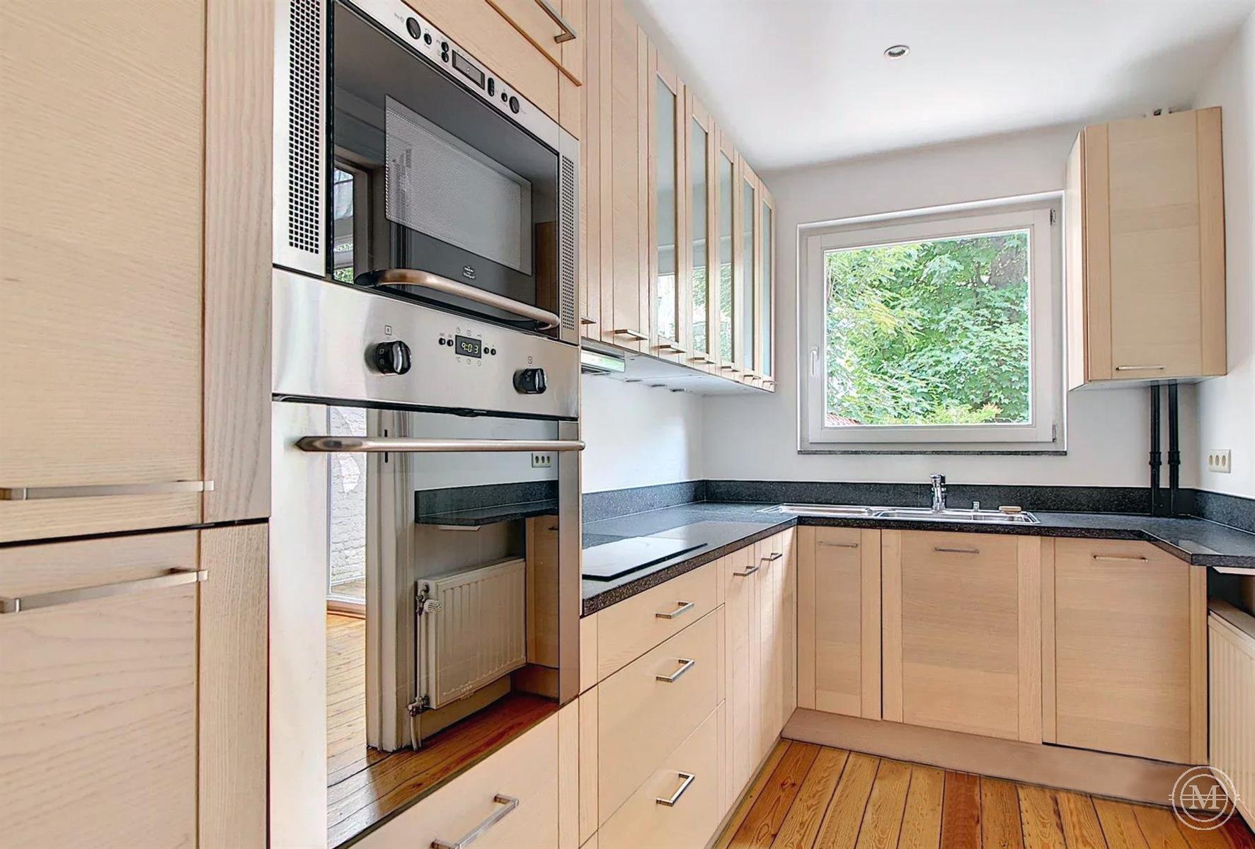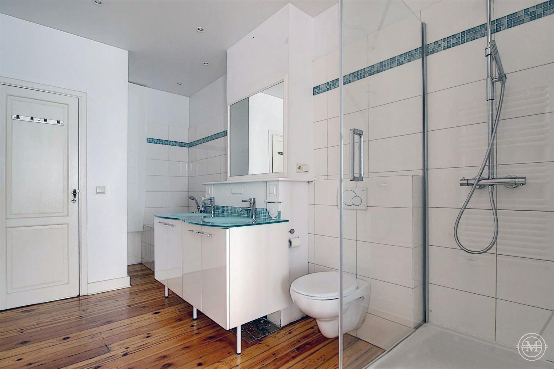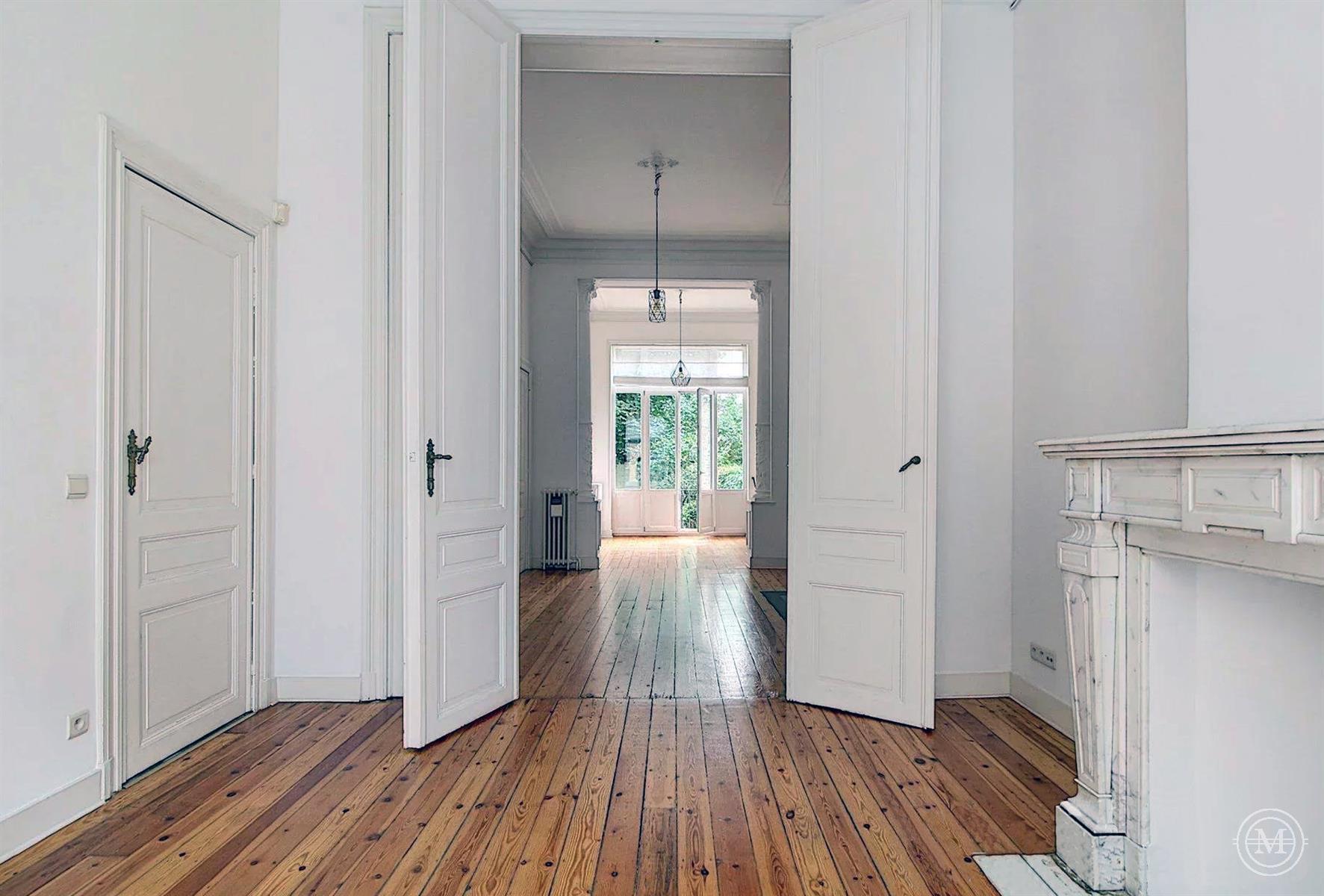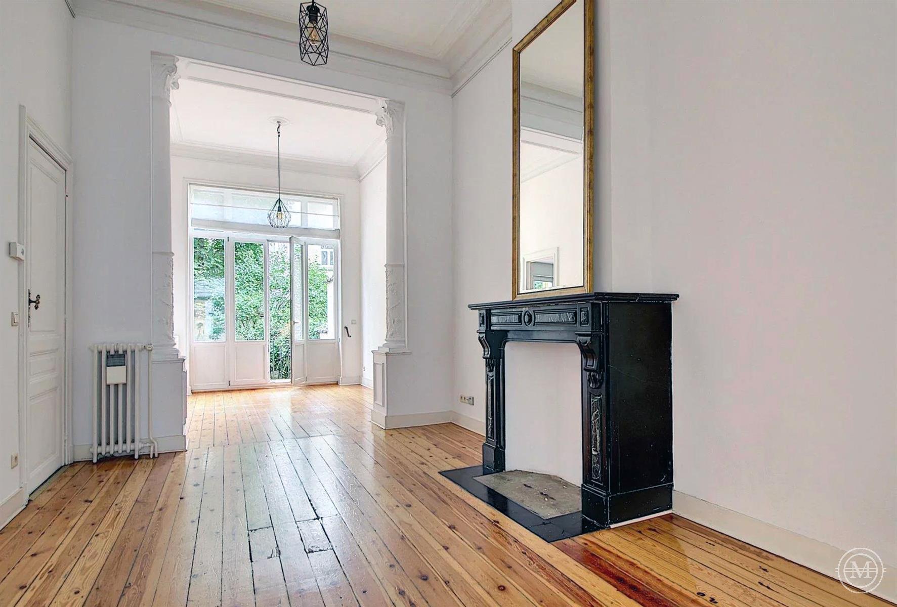 Dans une rue calme entre l'avenue Louise et les étangs d'Ixelles, charmante maison bourgeoise avec jardin et terrasse sur toit. Développant une superficie d'environ 275m2, le bien offre également de vastes caves et un grenier aménagé, un garage séparé. Un hall d'entrée avec mosaique au sol, de belles réceptions en enfilade s'ouvrant sur la terrasse et le jardin, une cuisine séparée hyper-équipée. Au 1er, Deux grandes chambres dont une avec dressing, une salle de bains. Au 2e, deux chambres et un bureau, une salle d'eau, une terrasse sur toit. Un lieu agréable qui a conservé toute son authenticité, avec ses hauts plafonds moulurés et ses menuiseries, ainsi qu'une belle façade de style éclectique. Quartier agréable, proche de toutes les facilités.
