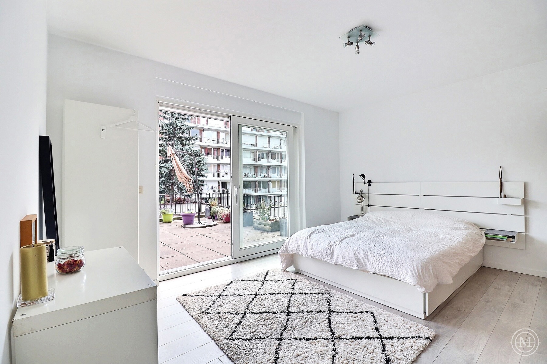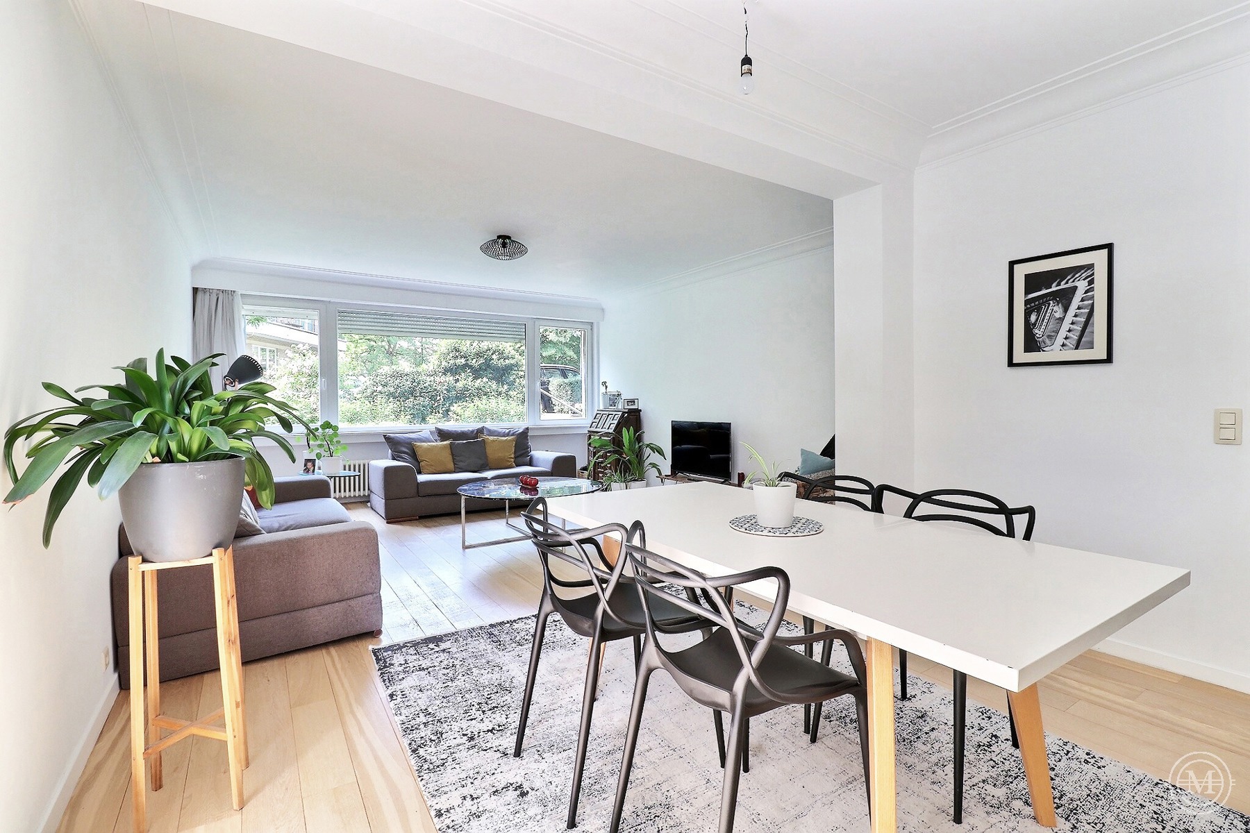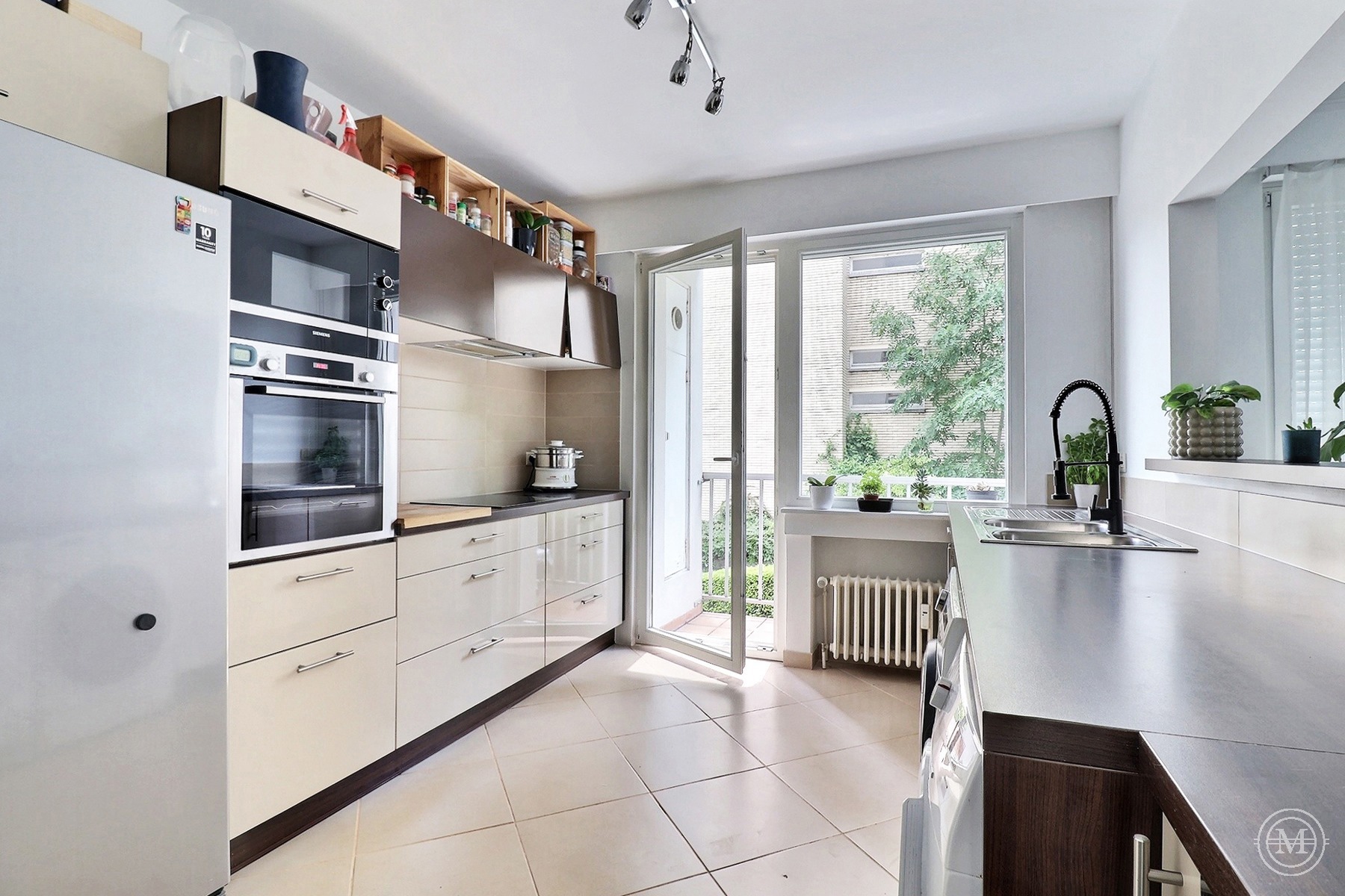 Dans un quartier résidentiel situé à proximité de l’Altitude 100 et du parc Duden, Meert Realty vous propose ce lumineux rez-de-chaussée d'environ 100 m². Le bien se compose comme suit : un hall d’entrée avec débarras et toilette, un séjour avec espace salle à manger, une cuisine équipée avec balcon, deux chambres dont une avec salle de douche attenante, une salle de bain séparée, une grande terrasse orientée Sud-Est et une cave. Le bien dispose d’un garage obligatoire (+ 40.000€). Parlophone. Chaudière collective au gaz. Double vitrage. PEB : E. Electricité conforme. Volets électrique partout. Local vélo. Proche de nombreux transports, commerces et écoles. Charges mensuelles : 250€/mois (chauffage, eau et communs). A visiter sans tarder ! Infos & visites : Amira +32 484 15 03 03