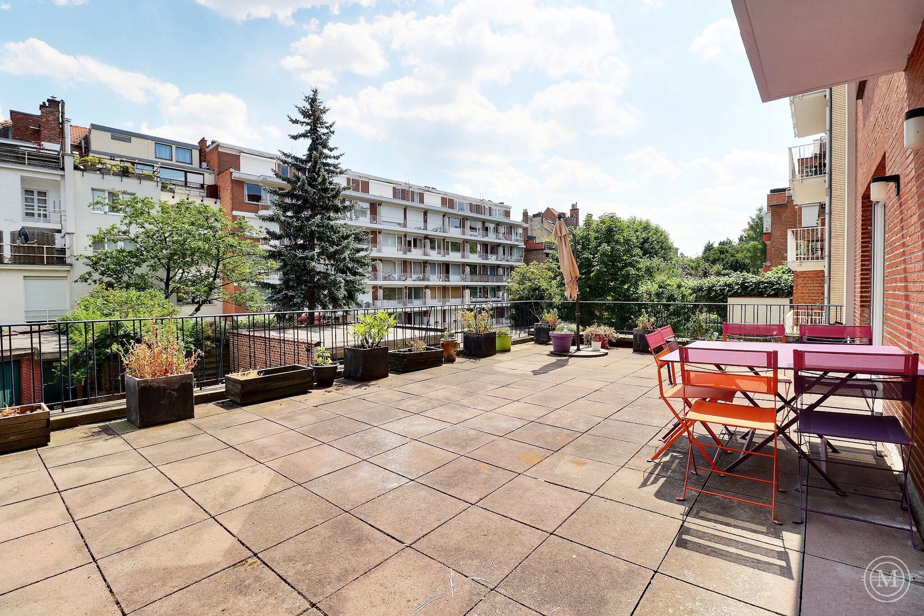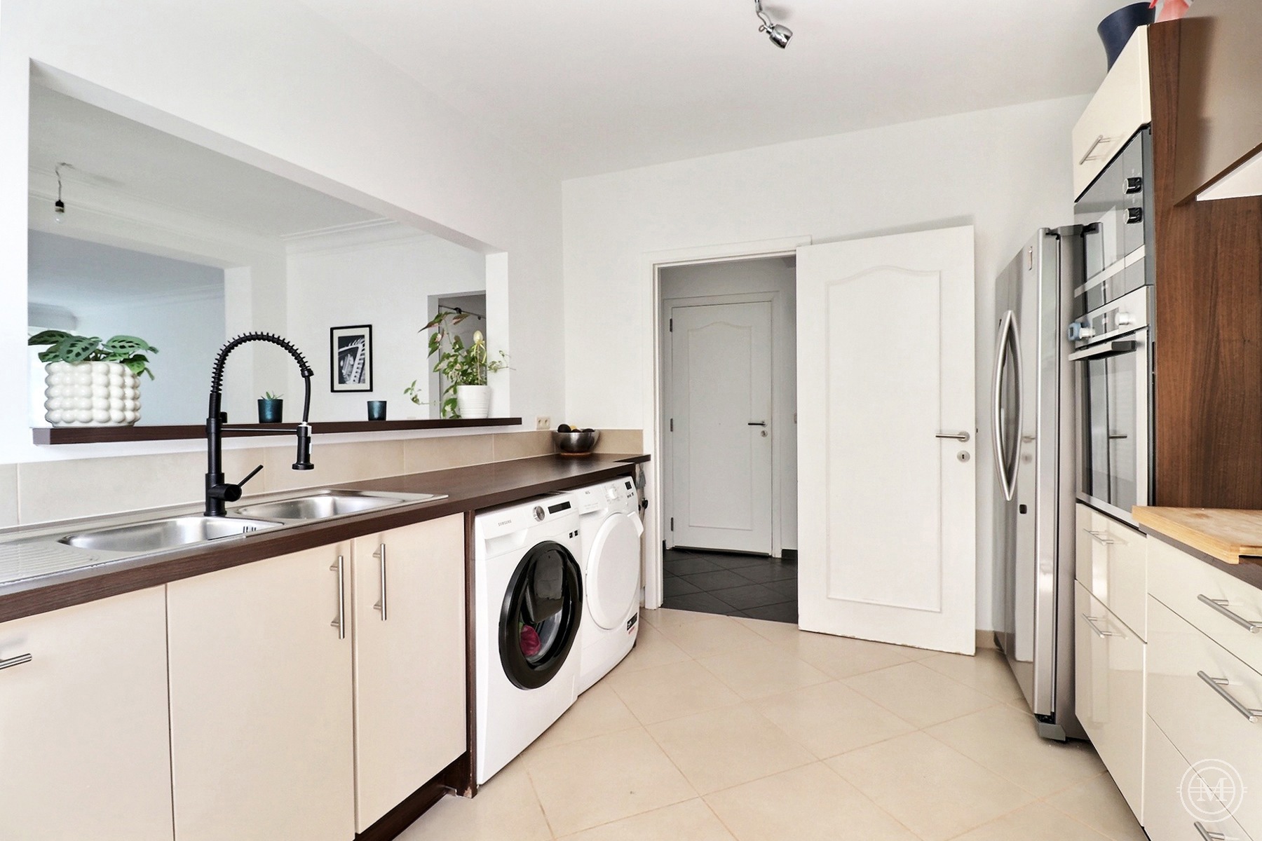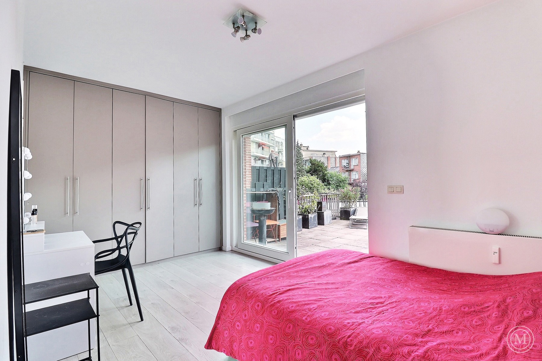 Dans un quartier résidentiel situé à proximité de l’Altitude 100 et du parc Duden, Meert Realty vous propose ce lumineux rez-de-chaussée d'environ 100 m². Le bien se compose comme suit : un hall d’entrée avec débarras et toilette, un séjour avec espace salle à manger, une cuisine équipée avec balcon, deux chambres dont une avec salle de douche attenante, une salle de bain séparée, une grande terrasse orientée Sud-Est et une cave. Le bien dispose d’un garage obligatoire (+ 40.000€). Parlophone. Chaudière collective au gaz. Double vitrage. PEB : E. Electricité conforme. Volets électrique partout. Local vélo. Proche de nombreux transports, commerces et écoles. Charges mensuelles : 250€/mois (chauffage, eau et communs). A visiter sans tarder ! Infos & visites : Amira +32 484 15 03 03