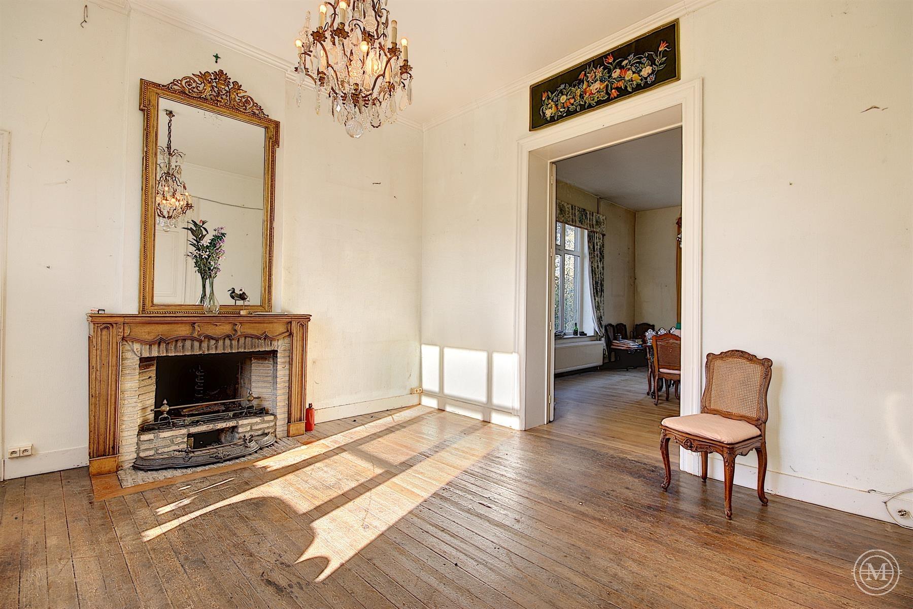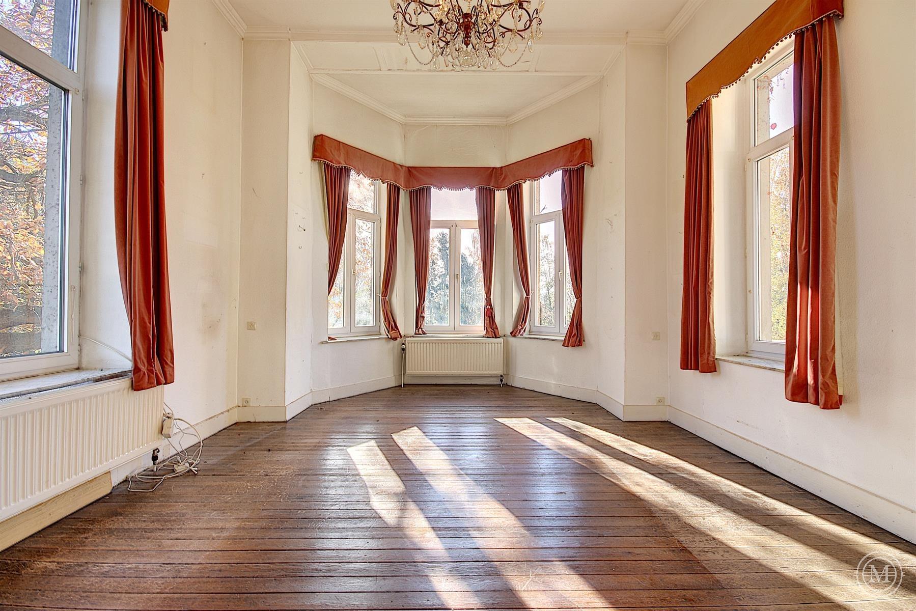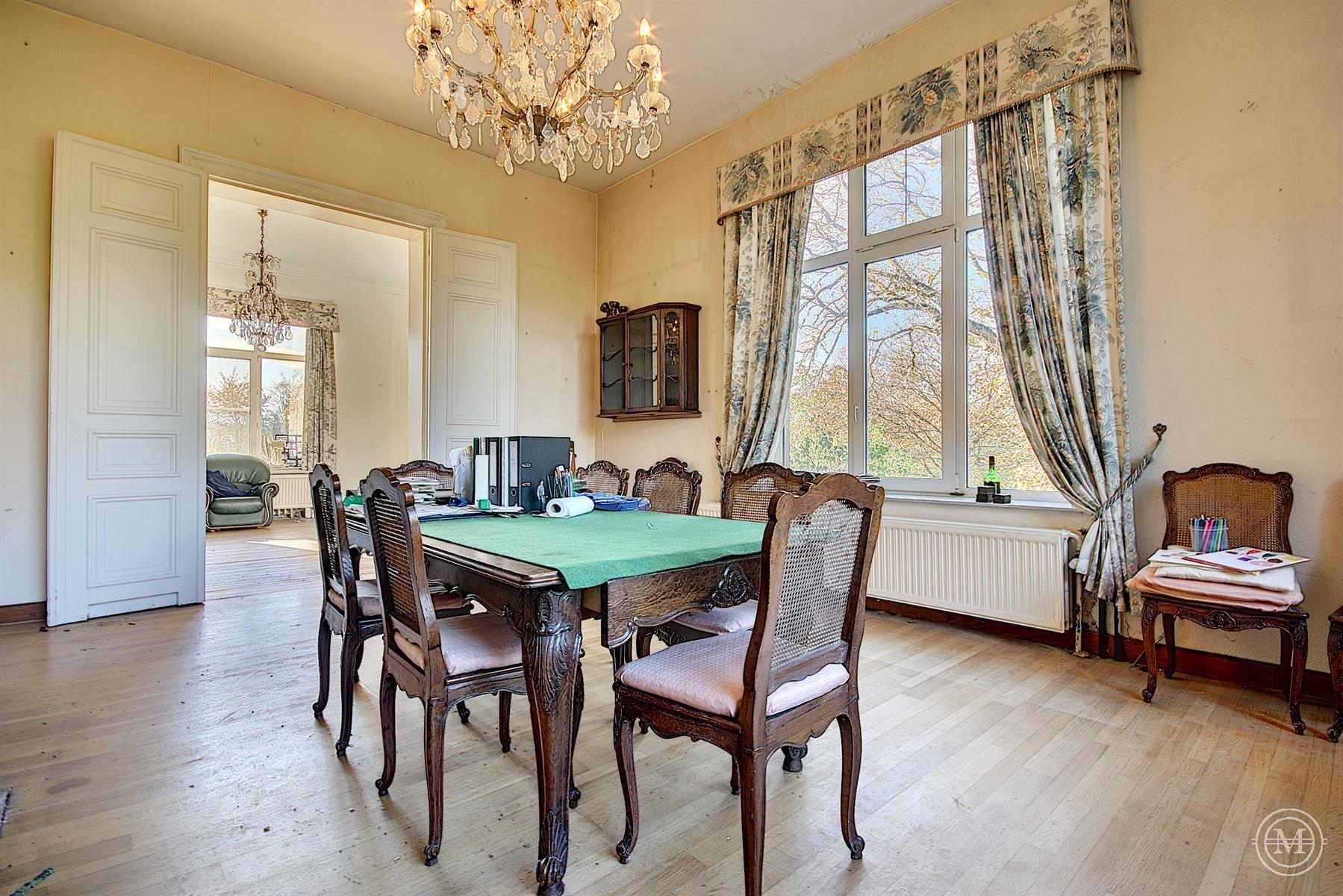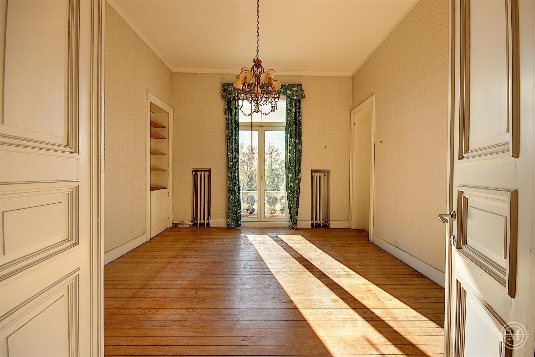 Situé dans un hameau verdoyant de la commune d’Eghezée, cet élégant Manoir de style néo-Renaissance érigé dans les années 1900 offre une surface habitable d’environ 1200 m2 et s’agrémente d’un parc joliment arboré de 1,89 ha. L’ensemble est composé de 4 niveaux. Le rez s’organise autour d’un vaste hall avec une belle cage d’escalier, 4 salons, 2 salles à manger, 2 cuisines, bibliothèque. Aux étages, 10 chambres et 4 salles d’eau, dressing. Au sous-sol, un appartement de service comprenant séjour, cuisine, 2 chambres et salle d’eau. Le bien dispose d’une dépendance avec 3 garages et d’une piscine extérieure. Rénovation partielle, toiture refaite, isolation, double vitrage, panneaux solaires, ascenseur. PEB: C. Terrain entièrement constructible. Situa tion idéale, entre Bruxelles et Namur (E411-E40). Un projet qui séduira les amateurs de charme et de pierres anciennes!