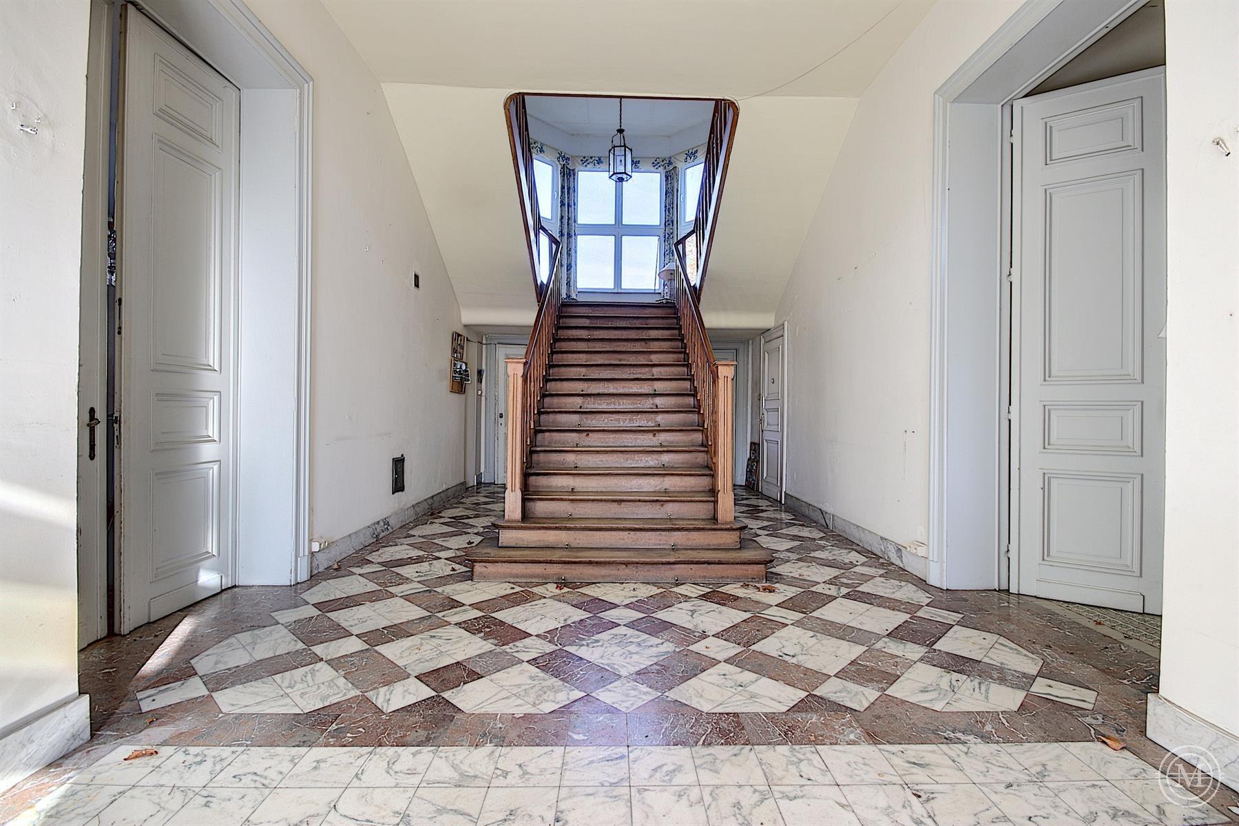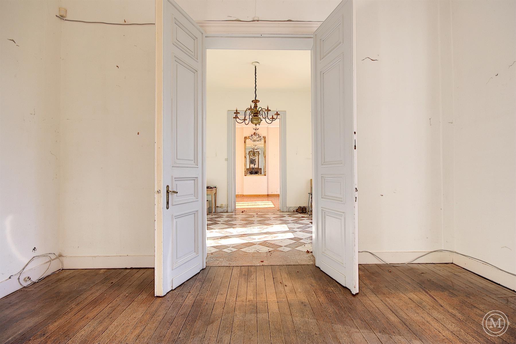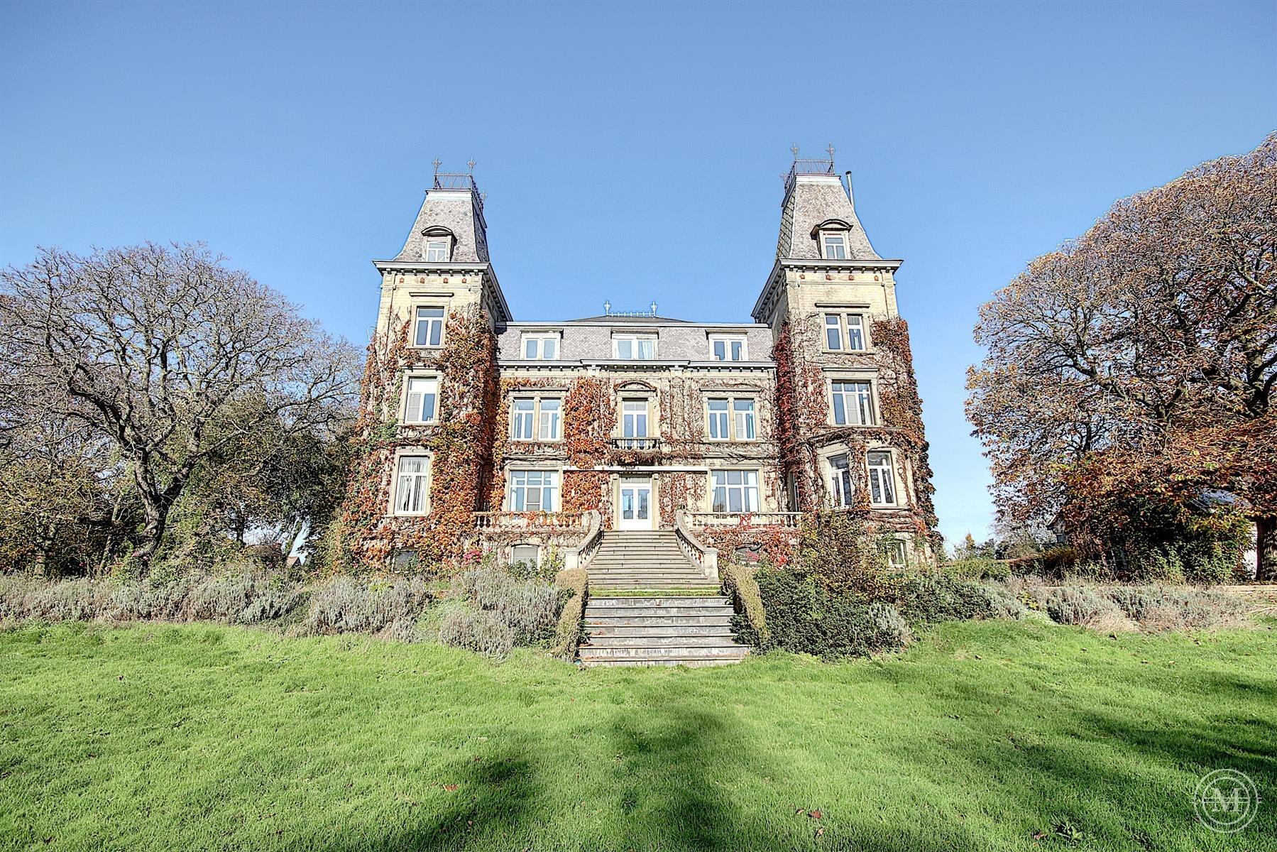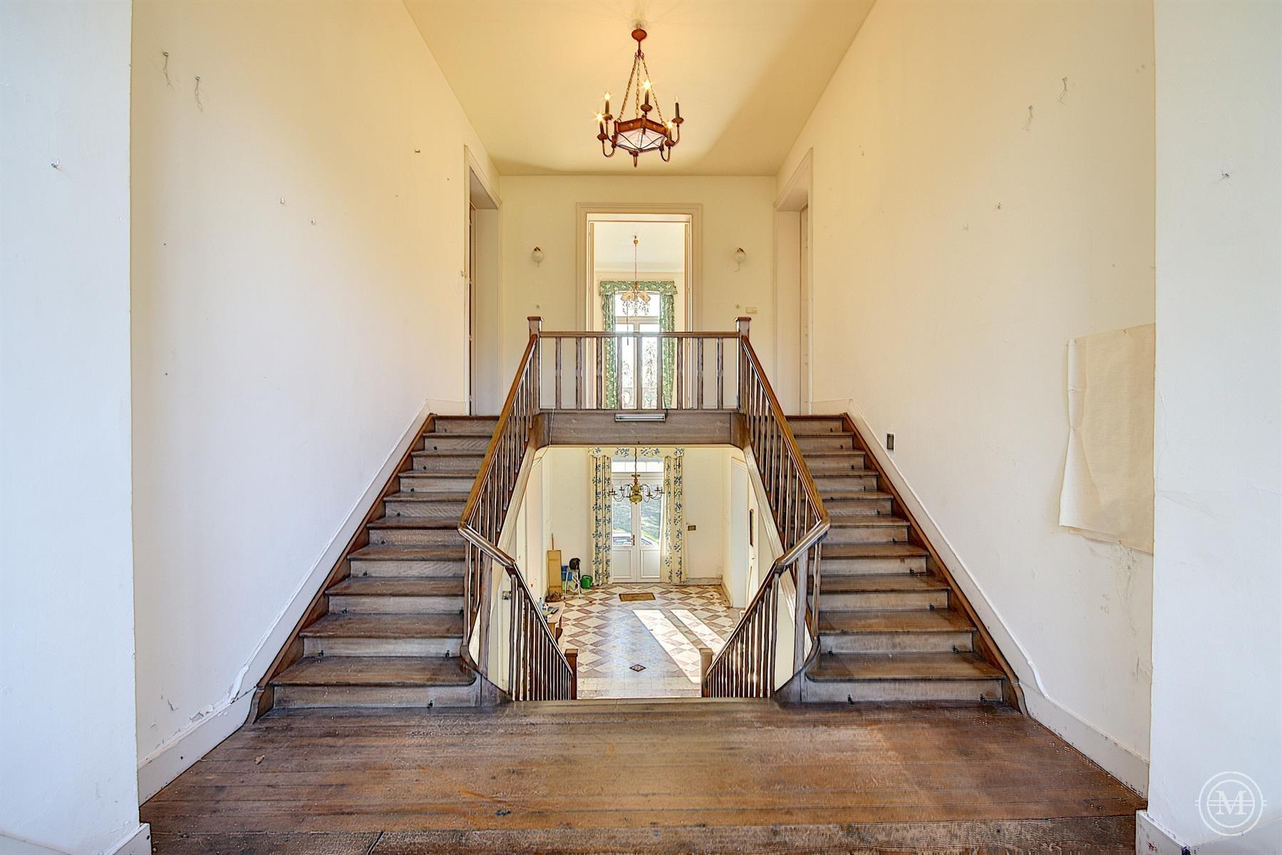 Situé dans un hameau verdoyant de la commune d’Eghezée, cet élégant Manoir de style néo-Renaissance érigé dans les années 1900 offre une surface habitable d’environ 1200 m2 et s’agrémente d’un parc joliment arboré de 1,89 ha. L’ensemble est composé de 4 niveaux. Le rez s’organise autour d’un vaste hall avec une belle cage d’escalier, 4 salons, 2 salles à manger, 2 cuisines, bibliothèque. Aux étages, 10 chambres et 4 salles d’eau, dressing. Au sous-sol, un appartement de service comprenant séjour, cuisine, 2 chambres et salle d’eau. Le bien dispose d’une dépendance avec 3 garages et d’une piscine extérieure. Rénovation partielle, toiture refaite, isolation, double vitrage, panneaux solaires, ascenseur. PEB: C. Terrain entièrement constructible. Situa tion idéale, entre Bruxelles et Namur (E411-E40). Un projet qui séduira les amateurs de charme et de pierres anciennes!
