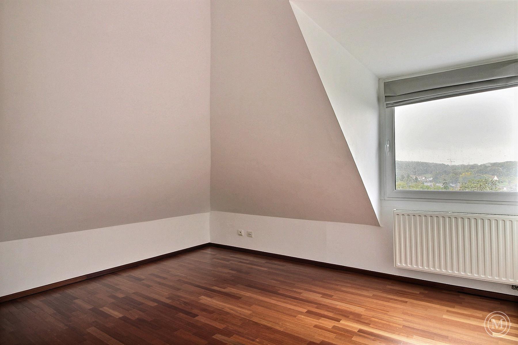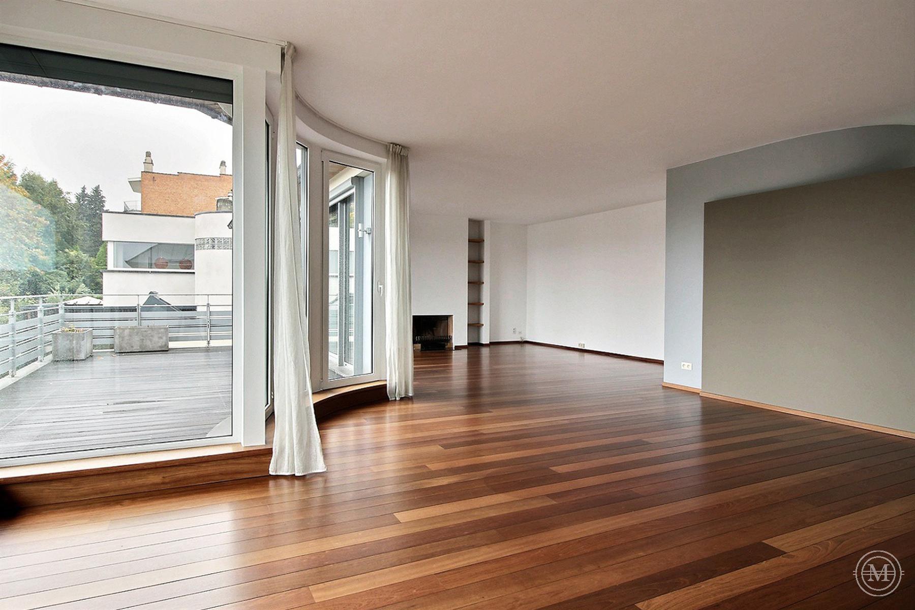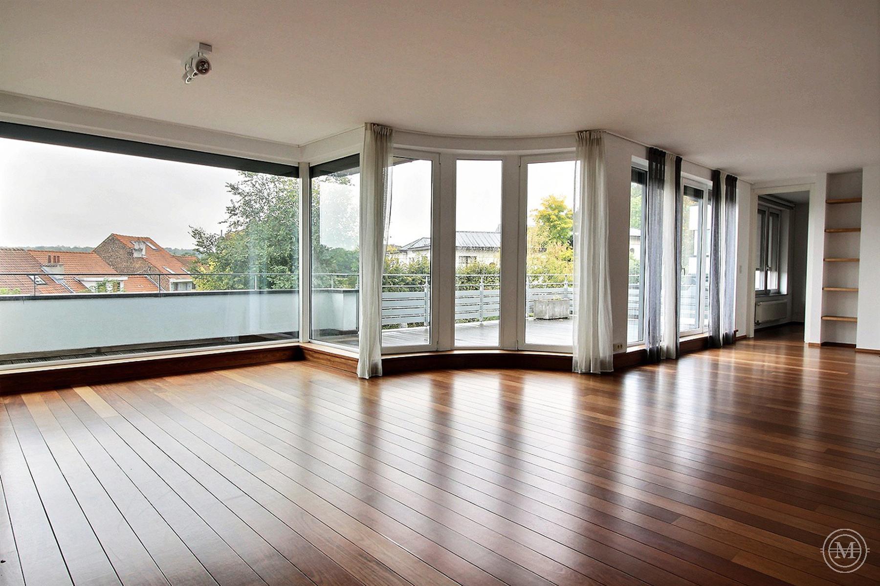 Vlakbij de Place Saint-Job, in een gebouw van drie verdiepingen, gebouwd in 2002, biedt Meert Realty u dit lichte duplex penthouse van ongeveer 150 m2.  De woning bestaat op het eerste niveau uit een hal met toilet, een lichte woonkamer met een eetkamer die toegang geeft tot een groot terras van 40 m² op het zuiden, een super ingerichte keuken met een wasruimte en toegang tot het grote terras, een master suite met dressing, badkamer en toilet. Op de tweede verdieping, twee slaapkamers, een badkamer en een kantoorruimte. Kelder. Individuele gas boiler. Vloerverwarming, dubbele beglazing, alarm. PEB : F. Maandelijkse lasten : 400€ (gemeenschappelijk kosten, tuinonderhoud en watervoorziening). Garage (+ 150 €). Mogelijkheid om een studio met eigen ingang te huren. Prettige buurt, dicht bij veel winkels en vervoer.