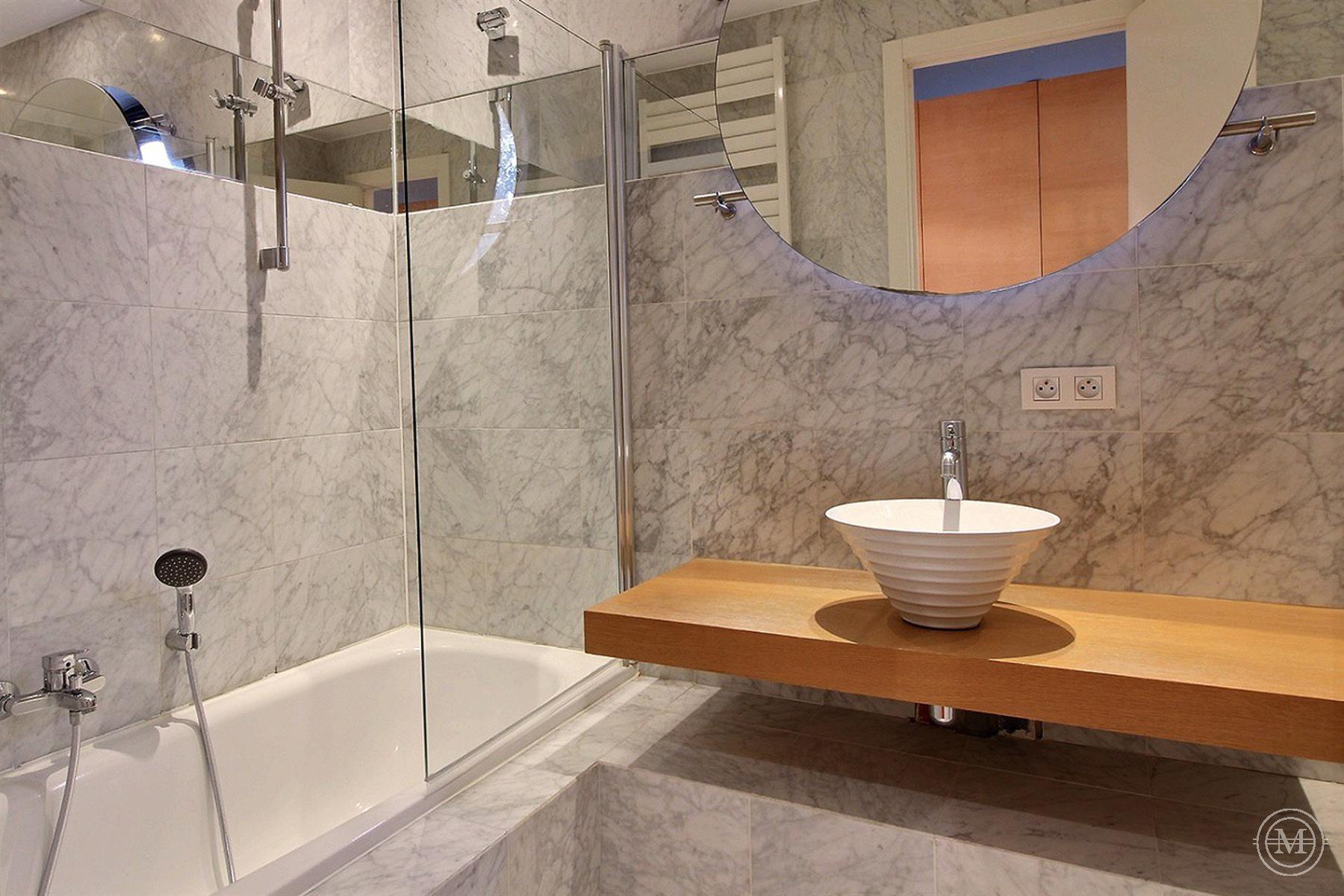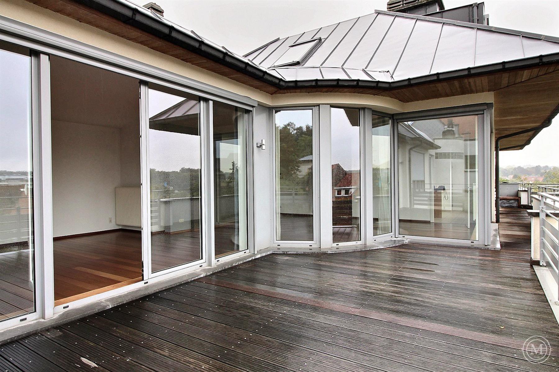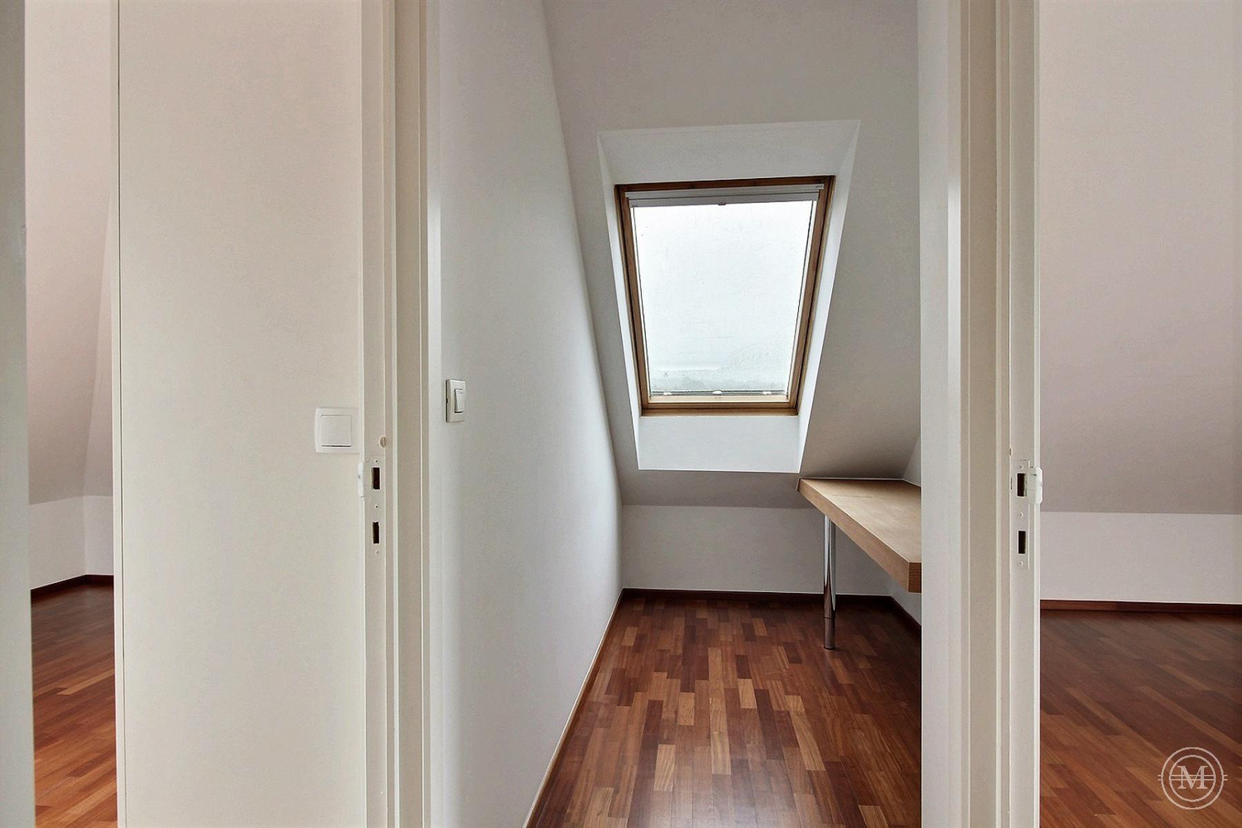 Vlakbij de Place Saint-Job, in een gebouw van drie verdiepingen, gebouwd in 2002, biedt Meert Realty u dit lichte duplex penthouse van ongeveer 150 m2.  De woning bestaat op het eerste niveau uit een hal met toilet, een lichte woonkamer met een eetkamer die toegang geeft tot een groot terras van 40 m² op het zuiden, een super ingerichte keuken met een wasruimte en toegang tot het grote terras, een master suite met dressing, badkamer en toilet. Op de tweede verdieping, twee slaapkamers, een badkamer en een kantoorruimte. Kelder. Individuele gas boiler. Vloerverwarming, dubbele beglazing, alarm. PEB : F. Maandelijkse lasten : 400€ (gemeenschappelijk kosten, tuinonderhoud en watervoorziening). Garage (+ 150 €). Mogelijkheid om een studio met eigen ingang te huren. Prettige buurt, dicht bij veel winkels en vervoer.