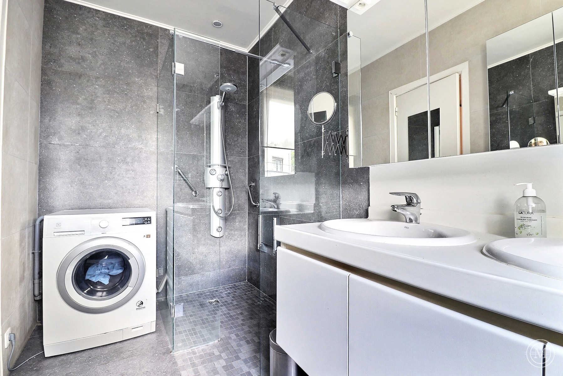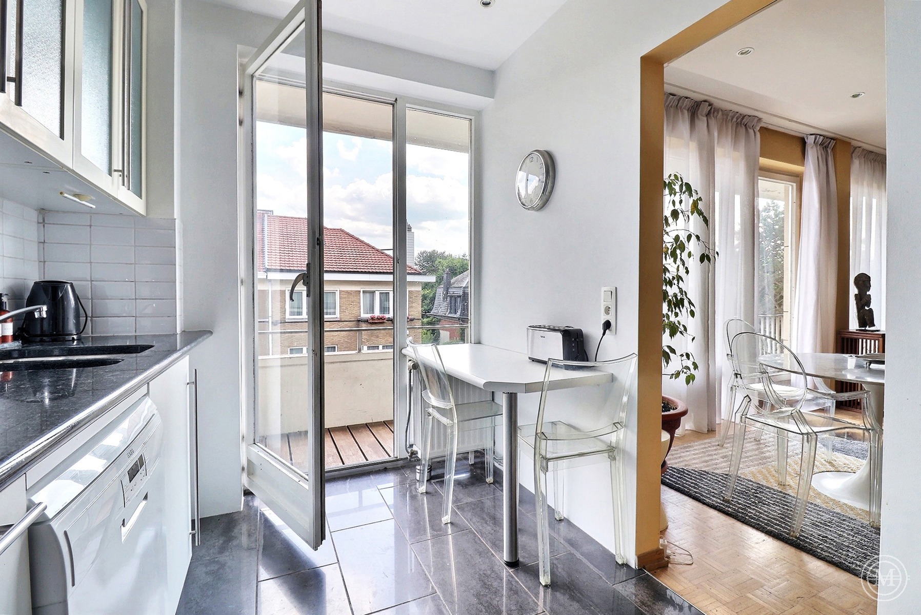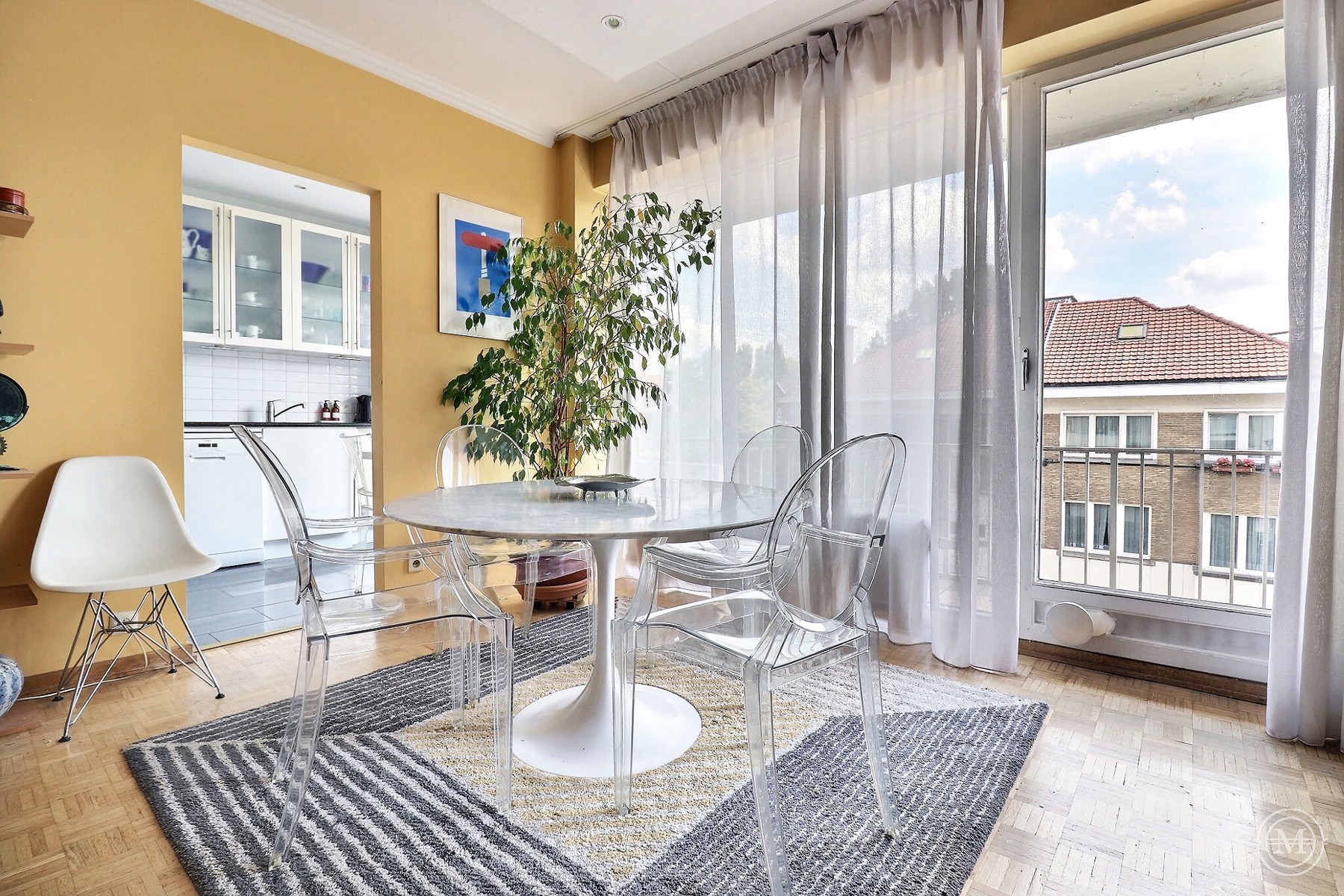 Gelegen in een rustige straat vlakbij het Jacques Brelpark, biedt dit gemeubileerde appartement een oppervlakte van circa 85m2 en een terras van circa 9m2 gelegen op het zuiden. Gelegen op de 2e verdieping van een klein condominium met lift, bestaat de woning uit een inkomhal met kasten, een woonkamer met parketvloer en toegang tot het terras, een aparte volledig uitgeruste keuken die ook toegang geeft tot het terras, een nacht hal, twee slaapkamers gelegen aan de achterzijde, een doucheruimte met wasruimte, een separaat toilet. Een parkeerplaats in de ondergrond (optioneel 100€). Kwaliteitsmeubilair en uitrusting (Saarinen, Pipistrello, Lytho). Ideaal als pied-à-terre, alle comfort, directe nabijheid van transport en winkels. Individuele verwarming op gas, dubbele beglazing. Maandelijkse lasten: 200€ (condominium). Info en bezoeken: +32 2 763 26 98 of info@meert-realty.com