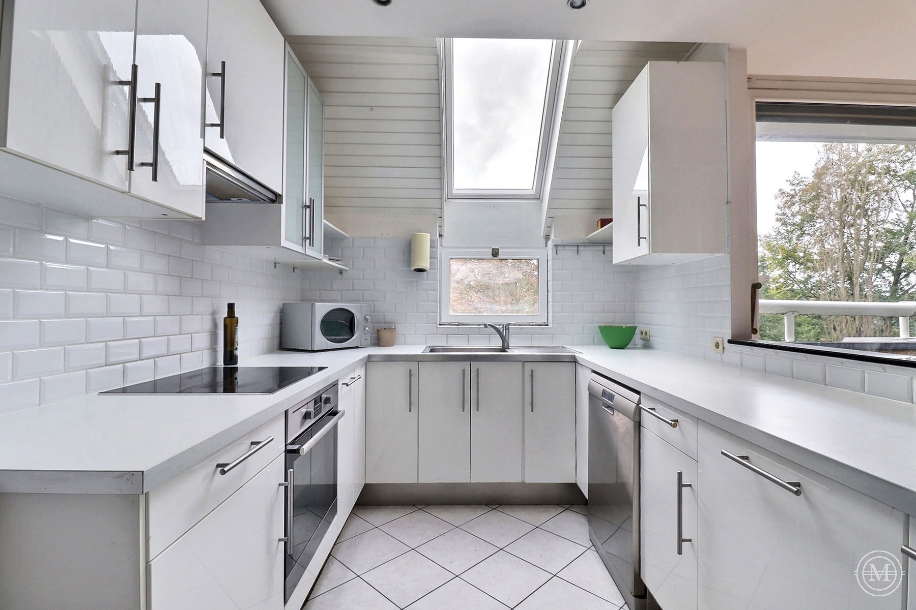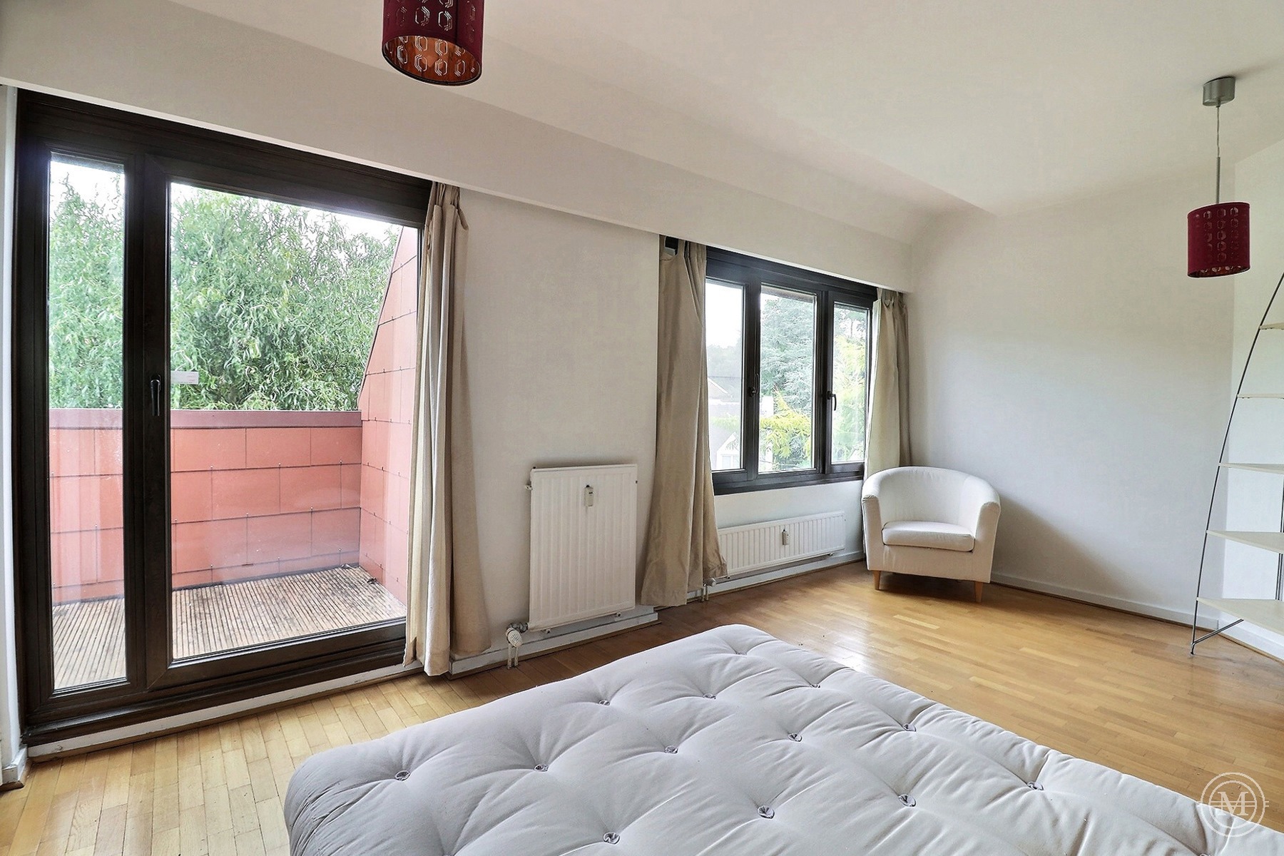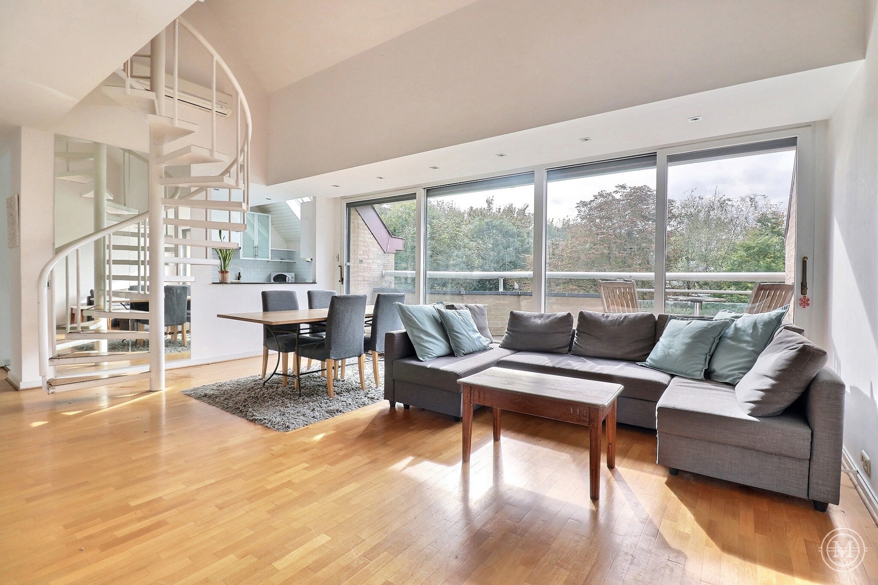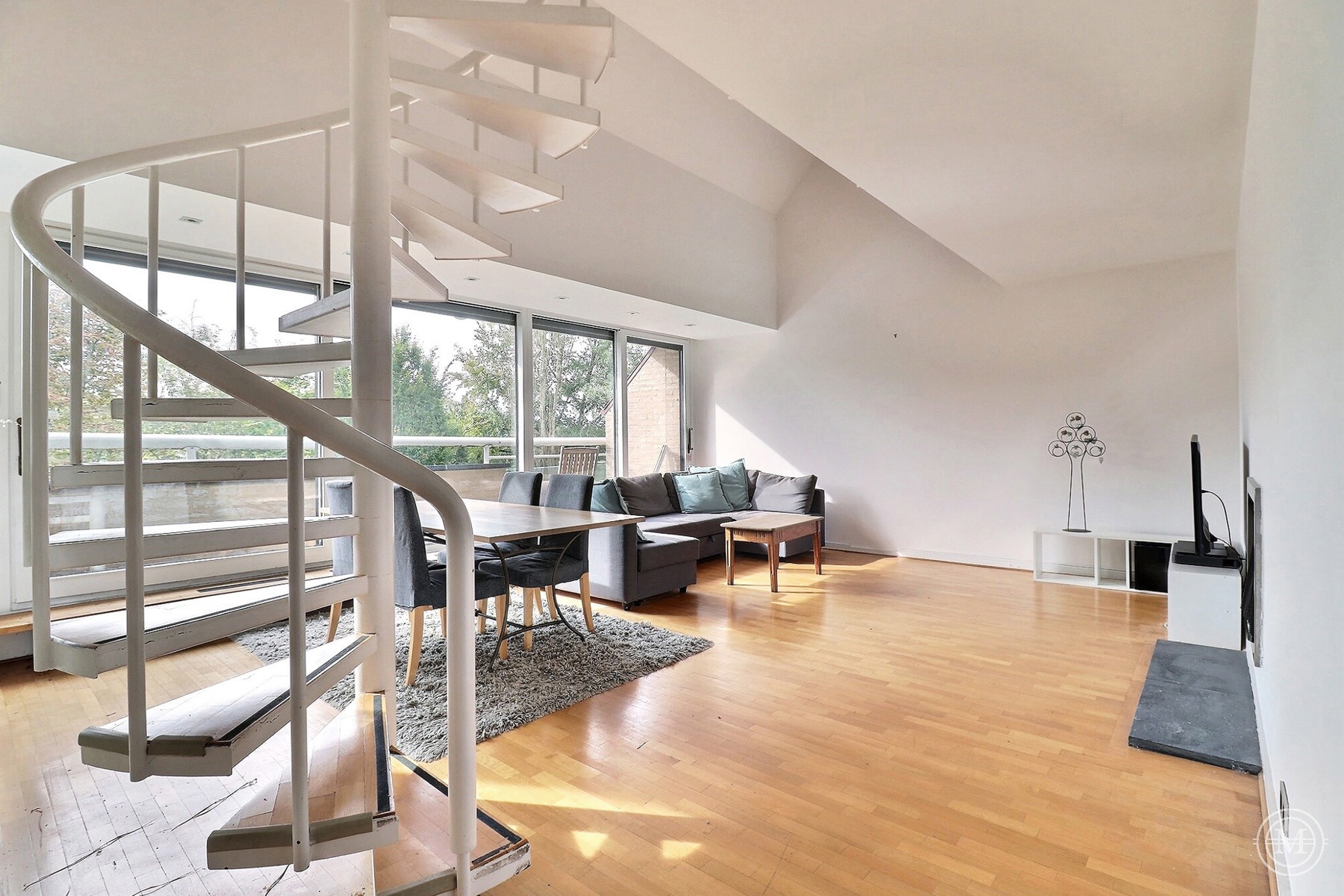 In de wijk Vivier d'Oie, prachtig duplex appartement van circa 147m² met vier slaapkamers, twee badkamers en terrassen. Gelegen op de 3e (bovenste) verdieping van een gebouw uit 1978, is de woning als volgt samengesteld: een inkomhal met vestiaire en toilet, een lichte woonkamer van circa 44 m² met parketvloer en functionele open haard, een terras aan de achterzijde (Zuid- West) met zicht op het omliggende groen, een volledig ingerichte open keuken. Een nachthal, twee slaapkamers (15-10m²) waarvan één met inbouwkasten, toegang tot het voorterras (Noord-Oost), een doucheruimte, een berging. Boven, een mezzanine met uitzicht op de woonkamer, een slaapkamer (14m²) met inbouwkasten en klein privéterras, een aangrenzende badkamer/wc, een slaapkamer/kantoor (10m²). Een parkeerplaats (+30.000€) en een kelder. Conform elektrisch systeem, PEB D. Collectieve verwarming op gas, dubbele beglazing, airconditioning. Provisie voor kosten: 700 €/maand (privé verwarming en waterverbruik, gemeenschappelijke kosten, reservefondsen, terugbetaling van de lening voor de renovatie van het dak en de lift). Rustige en residentiële wijk, dicht bij winkels en vervoer. Info en bezoeken: +32 477 66 17 69 - jeremy@meert-realty.com