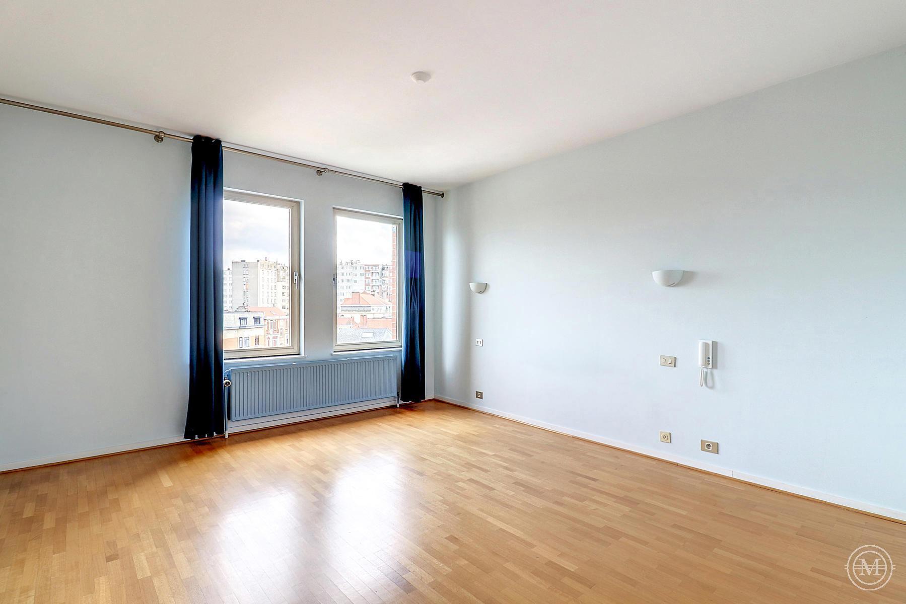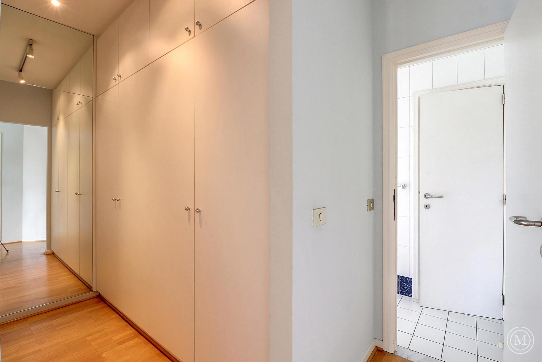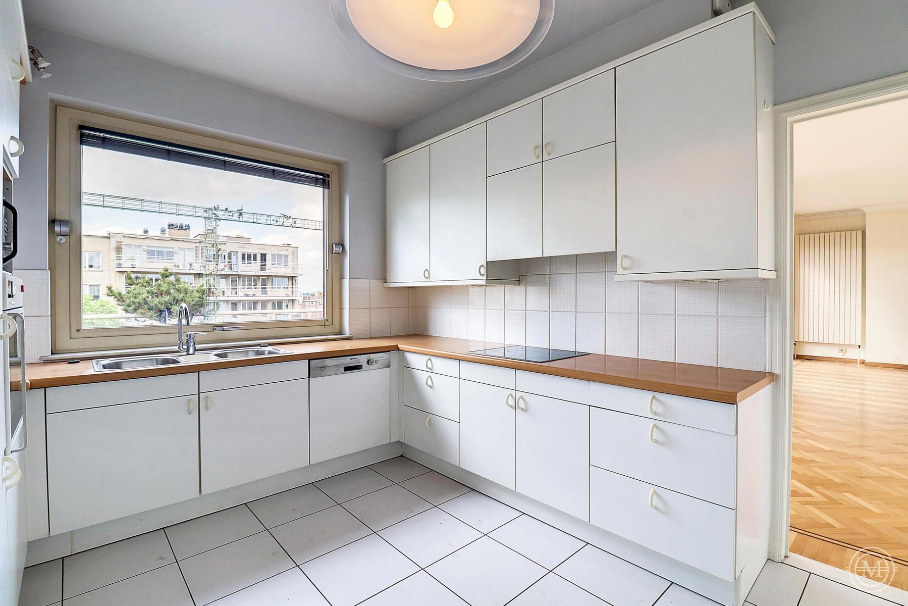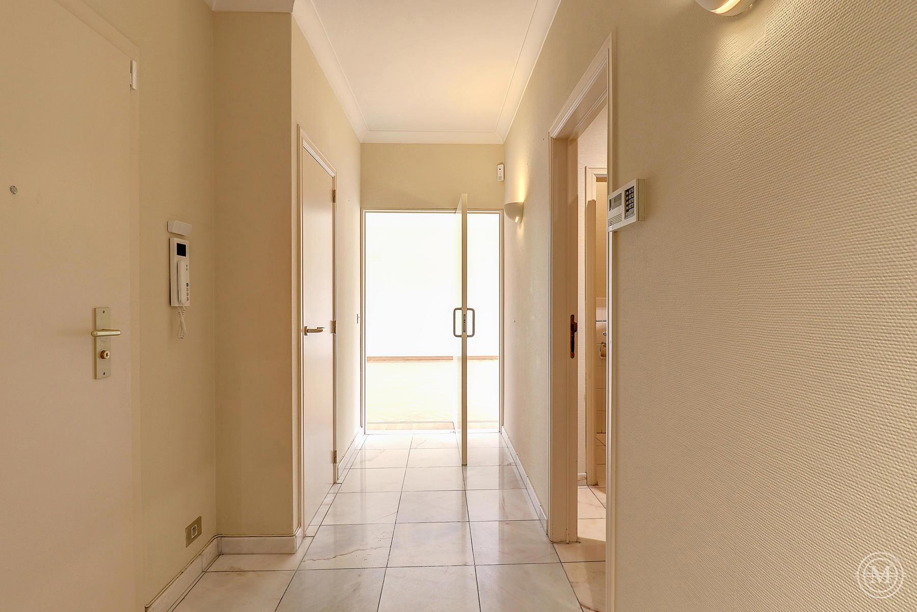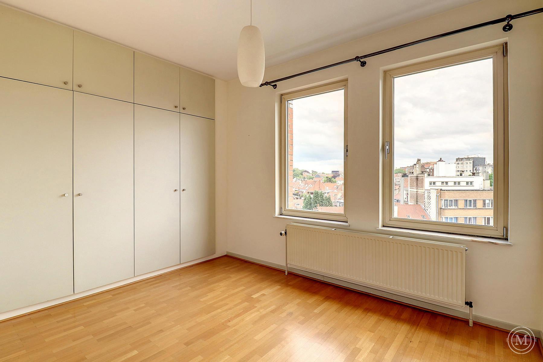 Meert-Realty is verheugd u dit ruime penthouse van ongeveer 160m2 aan te bieden, gelegen op een paar meter afstand van Square Maréchal Montgomery. Deze uitzonderlijke woning ontwikkelt zich op de 6e (bovenste) verdieping van een gebouw uit de jaren ‘90 en geniet van een prachtig terras met uitzicht van meer dan 50m2 dat toegankelijk is vanuit de woonkamer. Het bestaat uit een eigen inkomhal uitgerust met een vestiaire en een gastentoilet, een uitgeruste keuken, een wasruimte, een woonkamer met royale volumes in massief parket, een kantoorruimte met een schuifdeur, een en-suite slaapkamer met dressing en aparte badkamer/douche/apart toilet (40m2), een tweede slaapkamer met inbouwkasten en een doucheruimte met toilet (17m2). Een kelder en een parkeerplaats in de kelder zijn bij de prijs inbegrepen. Mogelijkheid tot aankoop van een afgesloten garagebox tegen meerprijs (35.000€). PEB E, dubbele beglazing, collectieve verwarming op gas, gepantserde deur, videofoon en nabij alle voorzieningen!