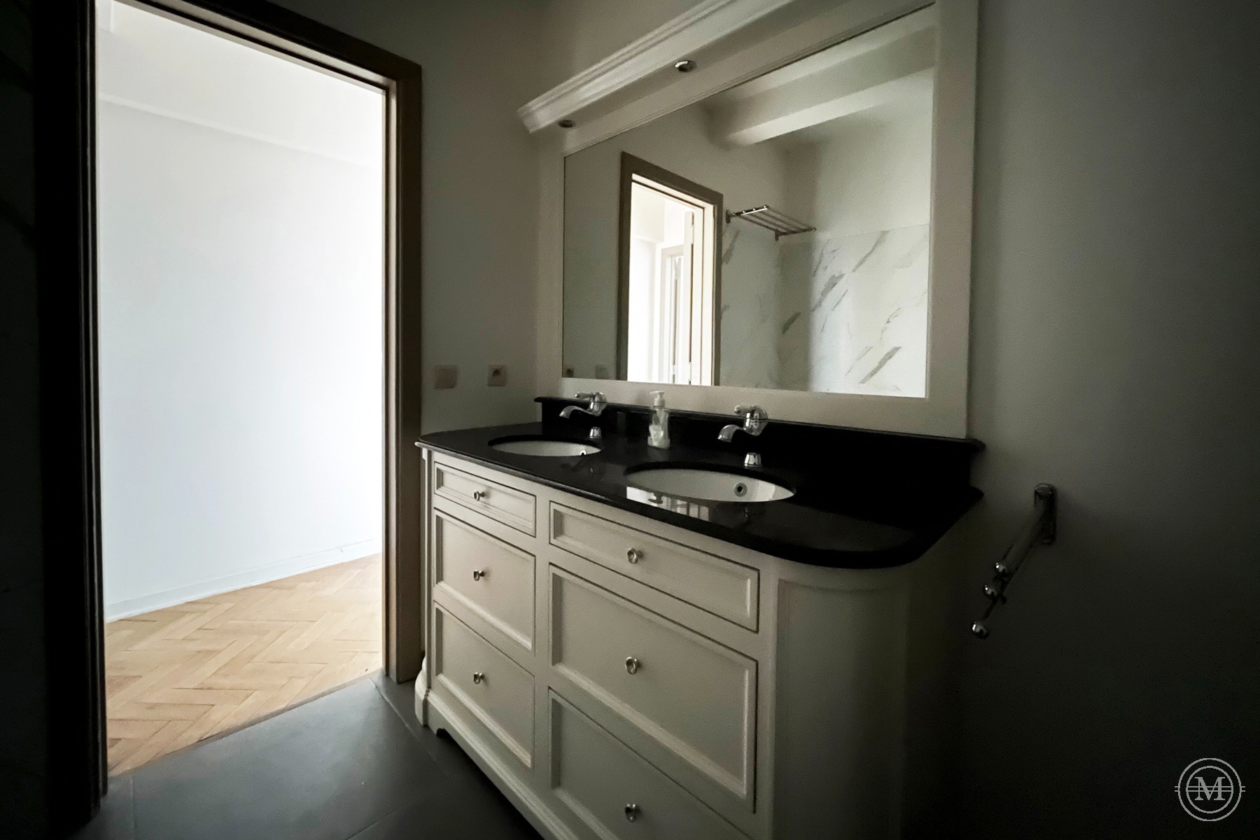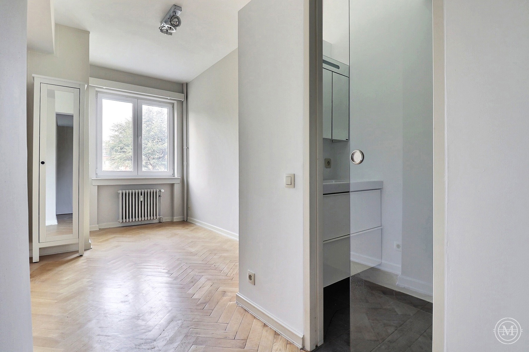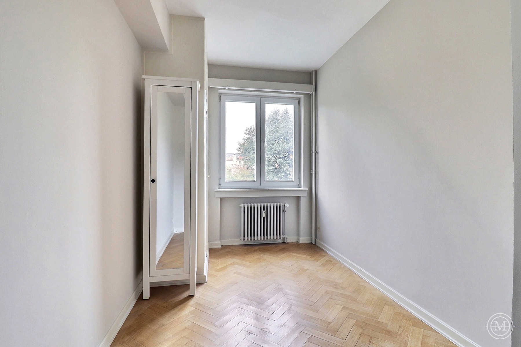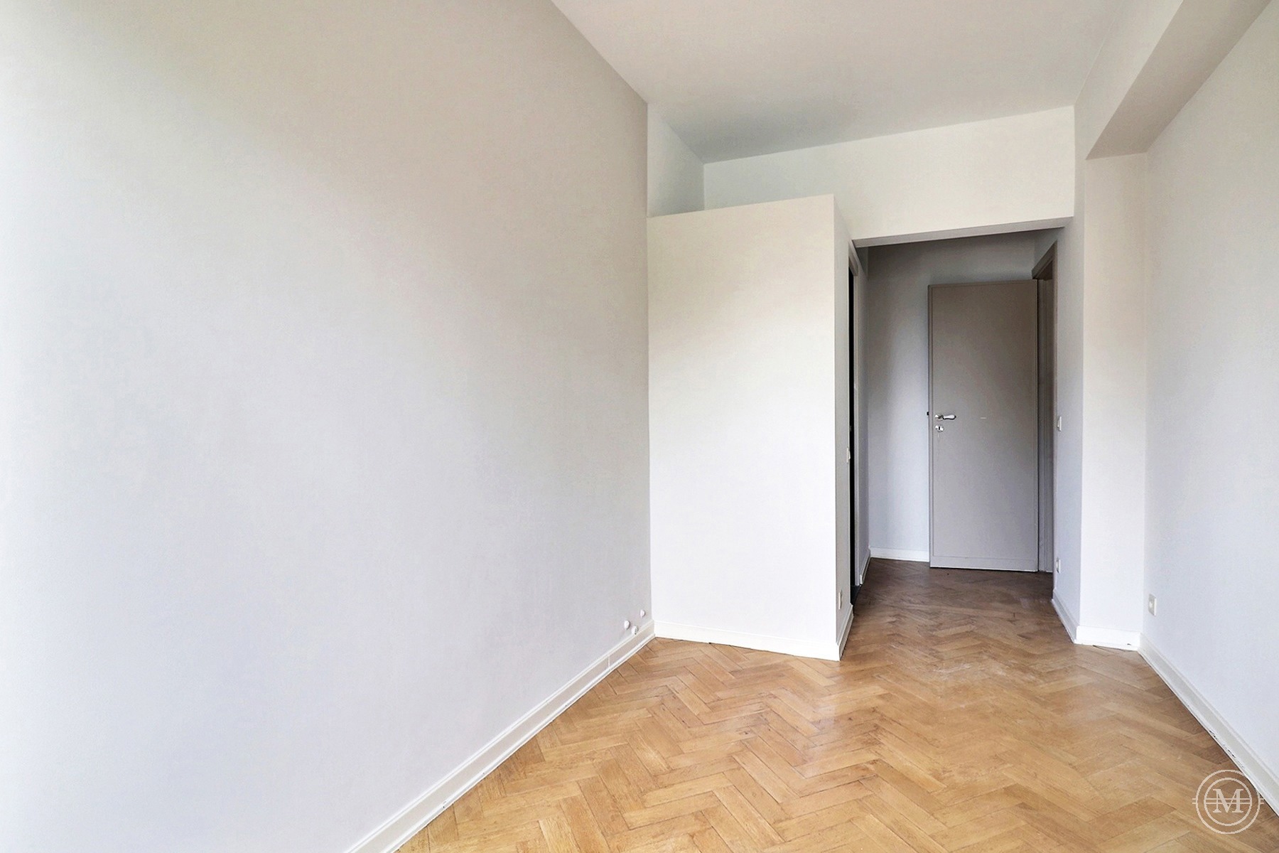 Nabij het Joséphine-Charlotteplein ligt dit appartement van circa 105m2 op de 1e verdieping van een perfect onderhouden woongebouw. Het pand is onlangs gerenoveerd en bestaat uit een grote inkomhal die alle lokalen verdeelt, een toilet, een lichte woonkamer aan de voorzijde, toegang tot het balkon, een volledig uitgeruste keuken (Miele, Smeg, Siemens) aan de achterzijde, toegang tot de terras. Een nachthal, twee slaapkamers waarvan één met douchekamer, een badkamer/douche (Aquabella), een toilet. Een kleine wasruimte. Een kelder. Collectieve verwarming op gas met warmtekrachtkoppeling, dubbele beglazing. Prachtige originele parketvloeren, kwalitatieve renovatie. Nabij voorzieningen, winkels, scholen, metro. Ideaal voor een eerste aankoop of een investering. Info en bezoeken: +32 2 763 26 98 of info@meert-realty.com
